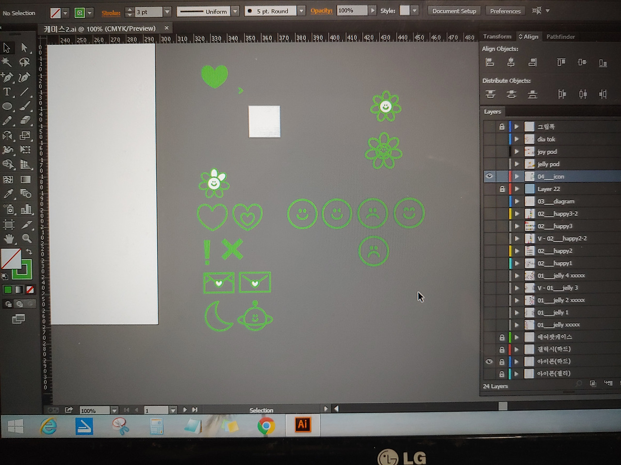 웃음/기쁨/슬픔 등 감정표현의 스마일 이모티콘과 하트/달 등의 아이콘을 여러개 제작해본다.
