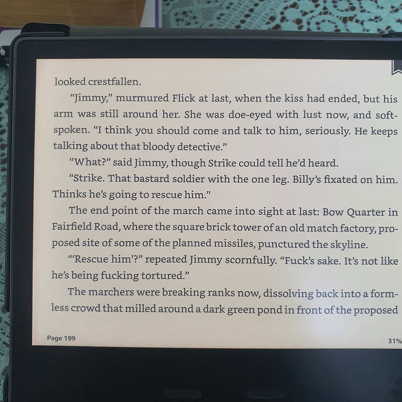 아직 3분의 1 정도밖에 못 읽어서 모두 미궁 속에 빠져있는 상황이다. 이후에 스트라이크의 헤어진 애인도 나온다고 해서 더욱 기대가 된다.