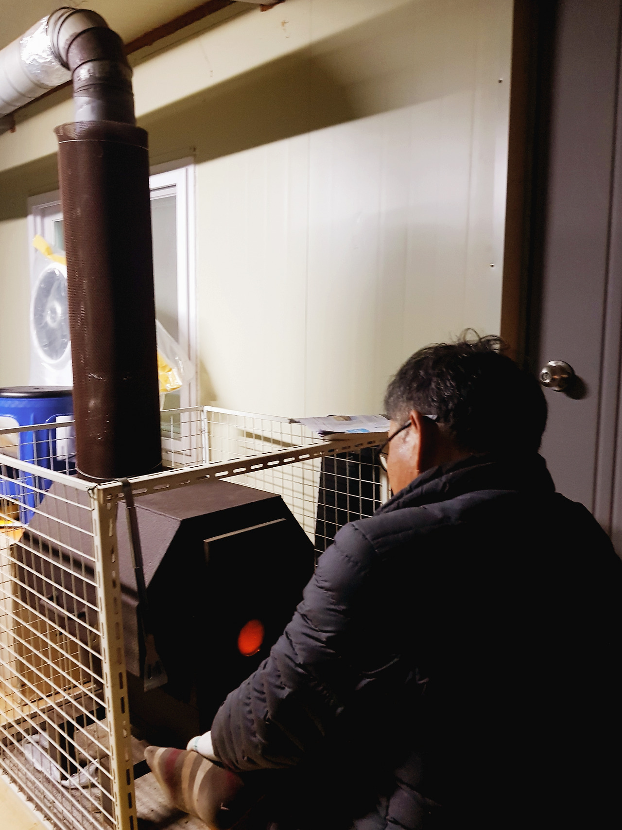 시골집에서 손자들 줄 고구마를 굽고 있는 아빠