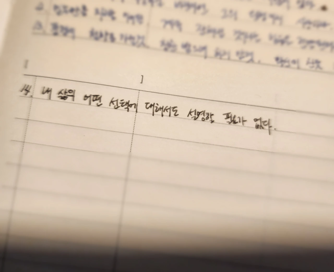 "내 삶의 어떤 선택에 대해서도 설명할 필요가 없다."