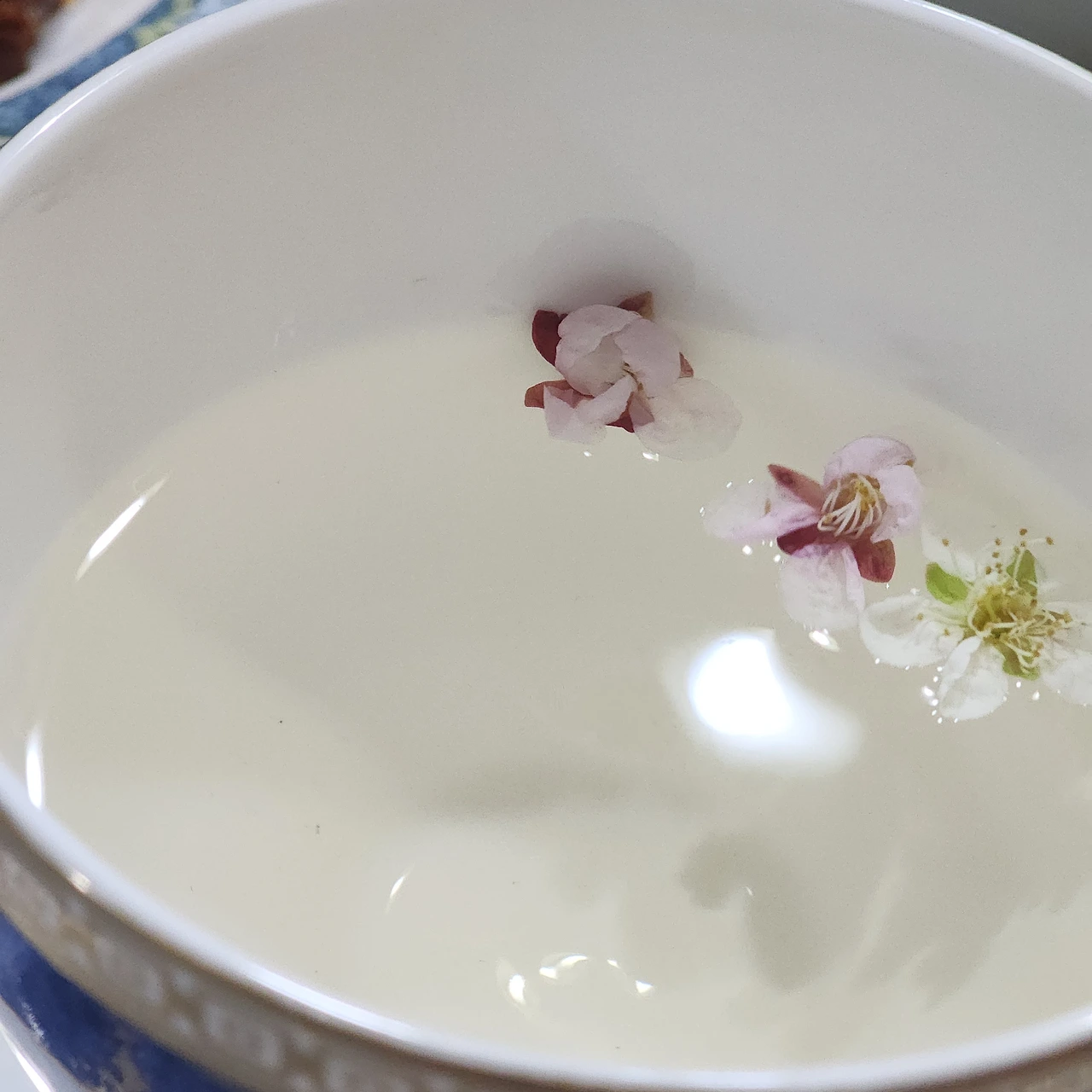 세 송이 동동 떠있는 꽃잎도, 그걸 조심스레 들고 오는 이모도 귀여워 웃었다.