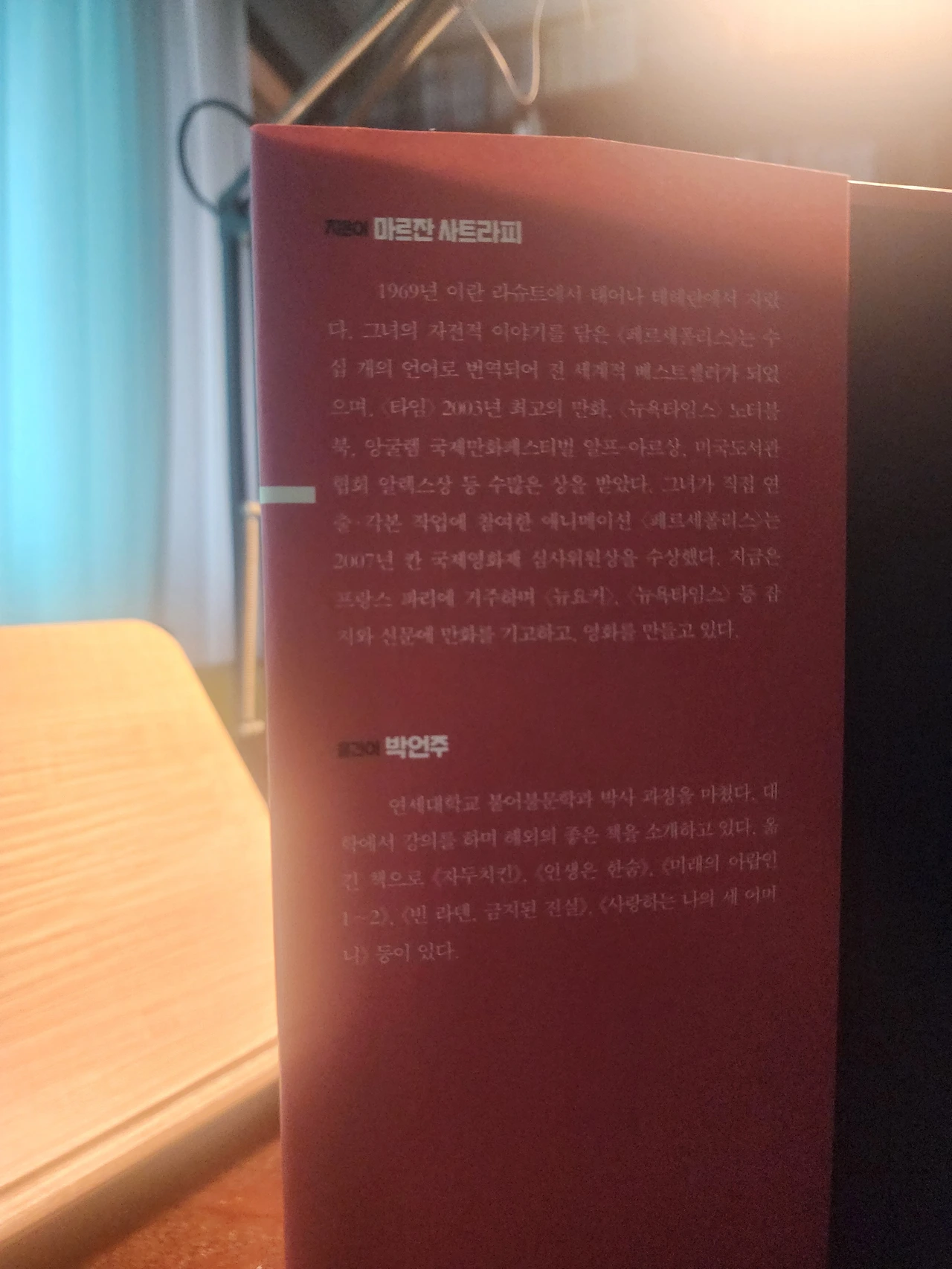 작가 마르잔 사트라피는 1969년 생으로 현재 프랑스에서 활동 중인 작가이자 만화가, 영화감독이다. 자신의 자서전이라 할 수 있는 페르세폴리스로 애니메이션 영화를 만들었으며 그 후에도 여러 편의 영화를 만들며 활동하고 있다.