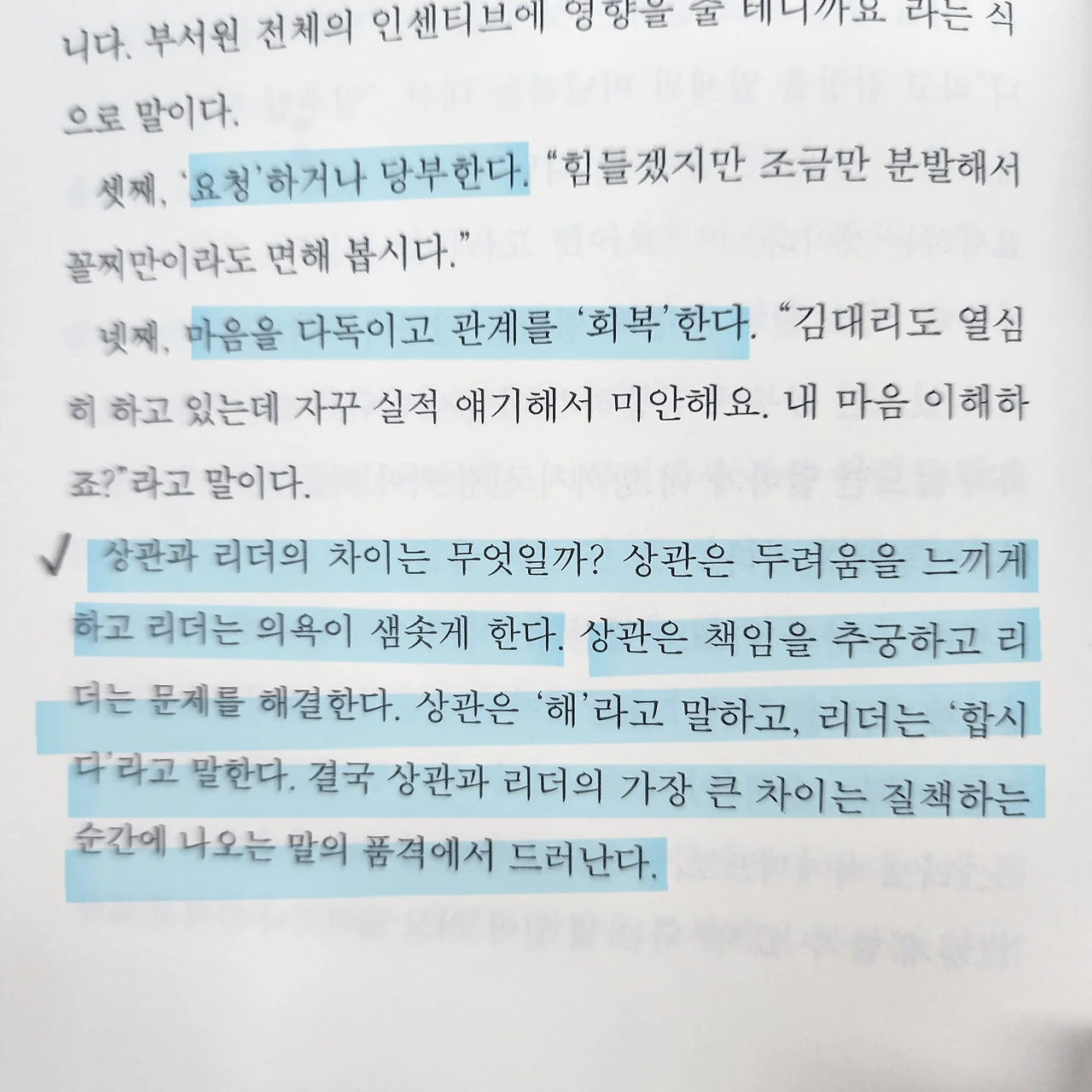 겸손하면서도 과하지 않다. 어떤 책은 작가가 너무 겸손해서 책에 대한 신뢰가 떨어지거나 비난받기 두려워 자신을 낮춘다는 생각이 들곤 하는데, 강원국 작가의 겸손은 자신감을 잃지 않는 단단함이 있다.