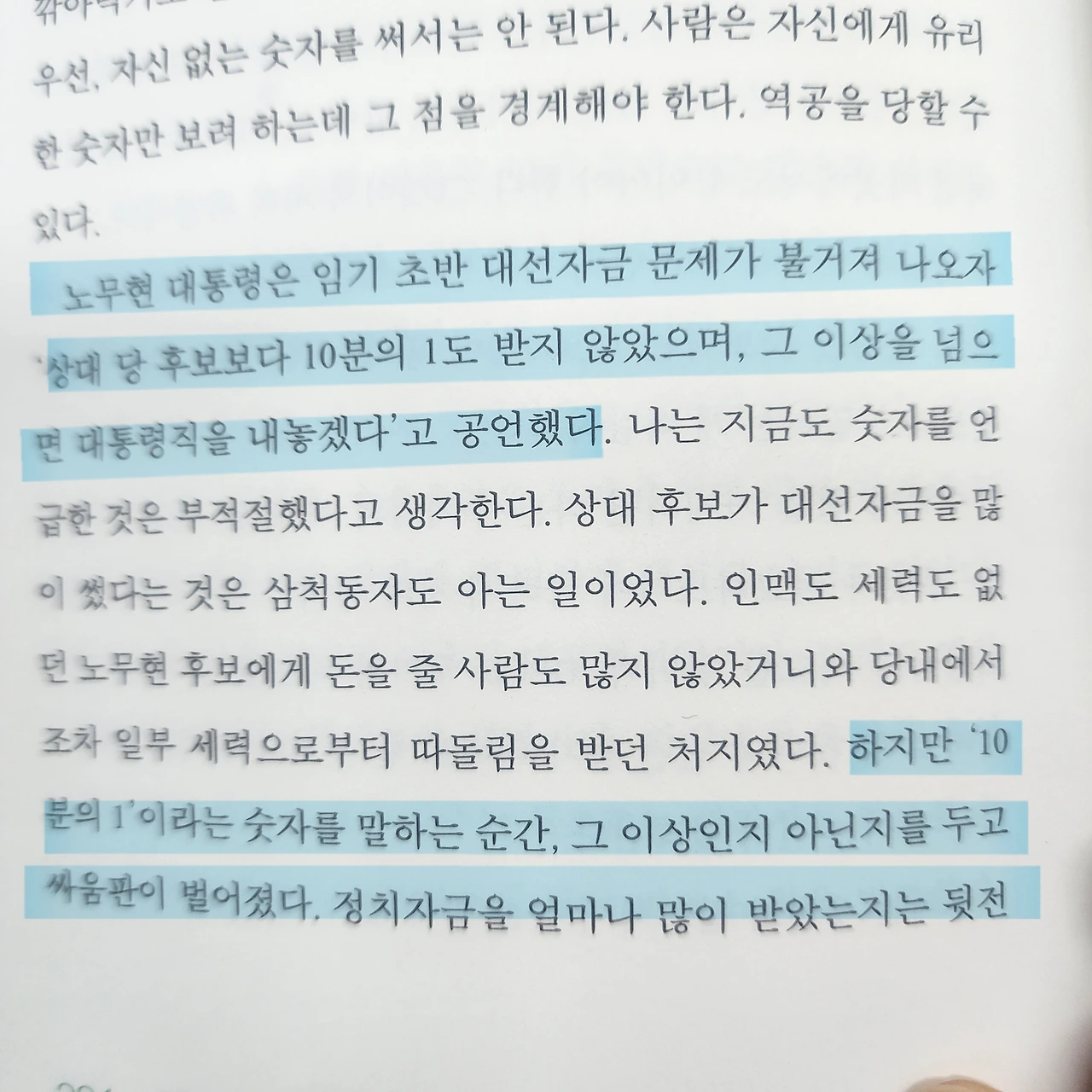 노무현 대통령이 숫자에 대해 언급했던 사례다. 이 부분을 읽으면서 지금도 벌어지고 있는 비슷한 일들에 답답했다. 그리고 이기적인 방식으로 안도했다. 내가 겪고 있는 불합리한 일들은 아무것도 아니로구나, 하고.