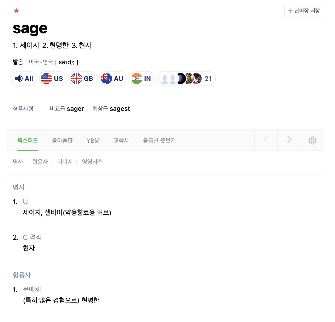 "현자"라는 단어의 영어 단어는 "Sage이다.