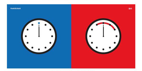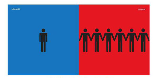 양리우는 중국에서 태어나 독일에서 살면서 느낀 독일(파란색) 중국(빨간색)의 문화 차이를 인포그래피 형식