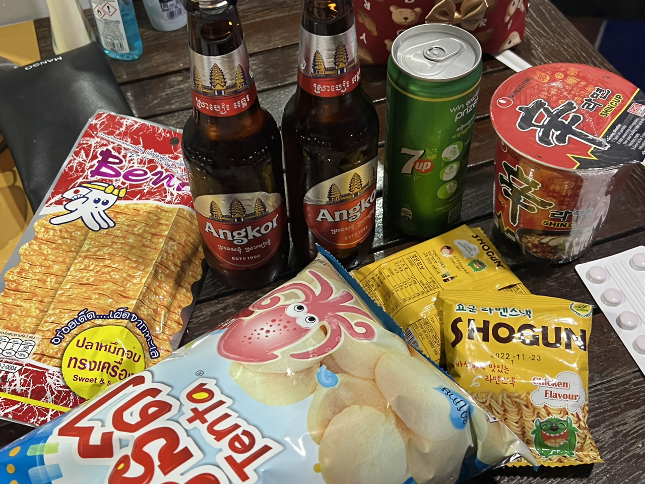 너무 덥고 습한 날, 하루 종일 돌아다녔기 때문에 피곤했던 우리는 저녁은 편의점에서 사 먹기로 했다. 캄보디아에서의 첫날 저녁은 그렇게- 신라면이 되었다. A는 심지어 서유럽식 캔음식(소세지랑 콩)을 데워 먹었다. 우리 뭐냐 진짜?