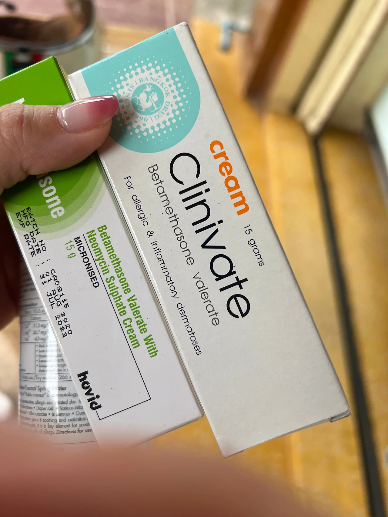 스테로이드 성분이 너무 강하면 얼굴 혈관을 확장시켜 피부를 더 붉게 만들 수 있기 때문에 결국 스테로이드 크림은 사지 않기로 했다. 스테로이드가 아주 극소량만 첨가된 크림을 원했었기에 결국 약국 할머님께서 건네주신 크림 중 엄마가 여드름 용이라고 설명한 연고와 항생제만 구매했다.