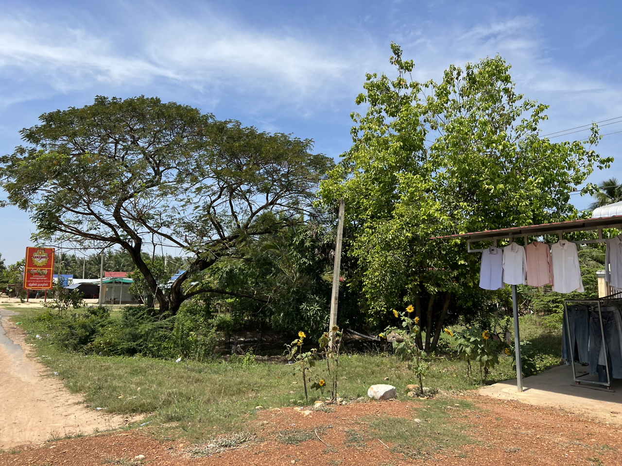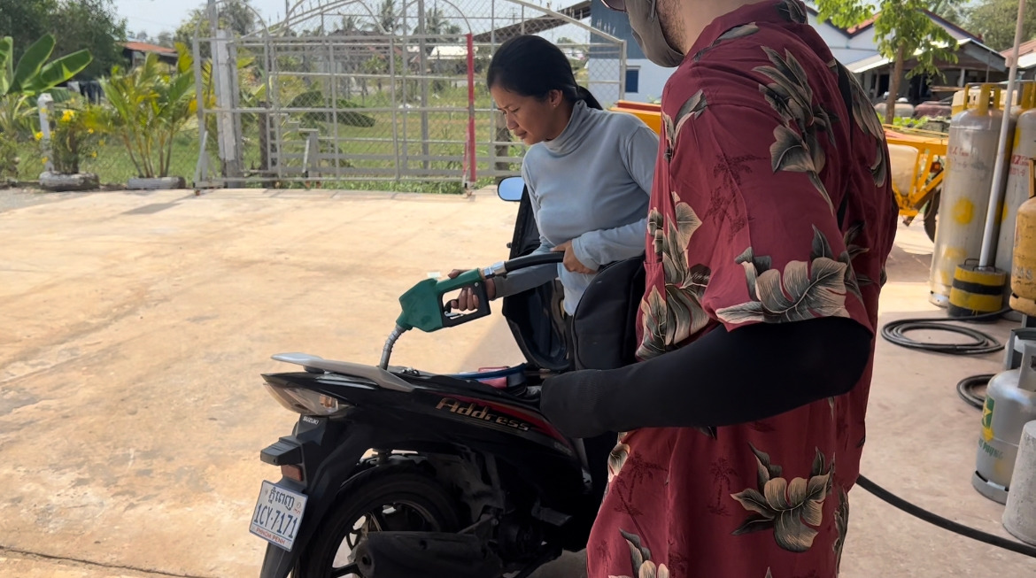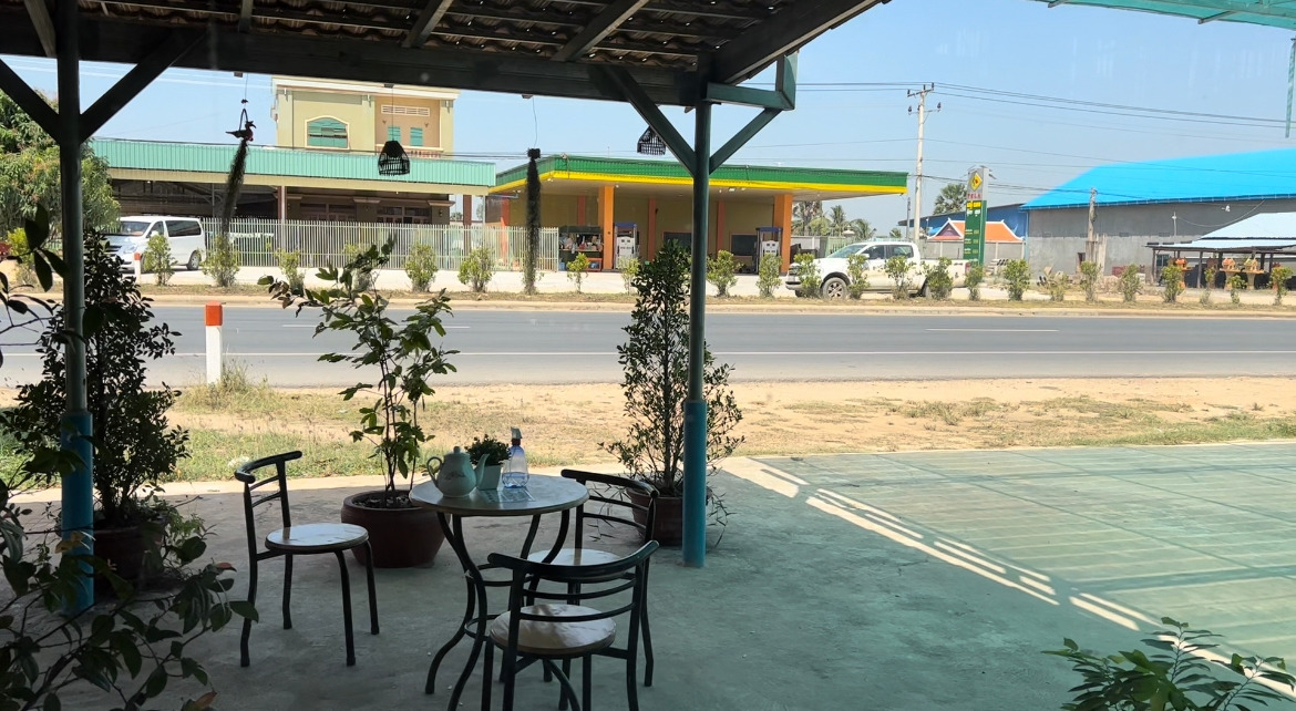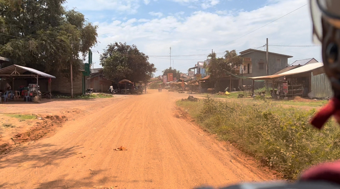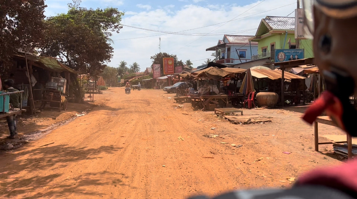 숙소를 떠난 지 한 시간이 넘어가니 프놈펜과 그 외곽을 완전히 빠져나온 기분이 들었다. 한가해진 도로에 기분이 좋았던 것도 잠시, 작은 마을을 가로지르던 우리는 우리가 하루 종일 아무것도 마시지도 먹지도 않았다는 걸 기억해냈다.