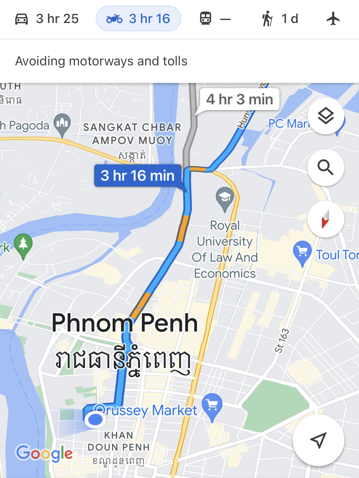 솔직히 스마트폰 기술이 이만큼 발전하지 않았다면 이런 로드트립은 엄두도 못 냈을 것 같다는 생각이 머리를 스쳤다. 아무튼, 프놈펜 외곽의 도로에는 큰 트럭 등 도심보다 크기가 큰 차량이 많다고 들었기 때문에 도시를 최대한 안전하게 빠져나가는 게 우리의 목표였다.