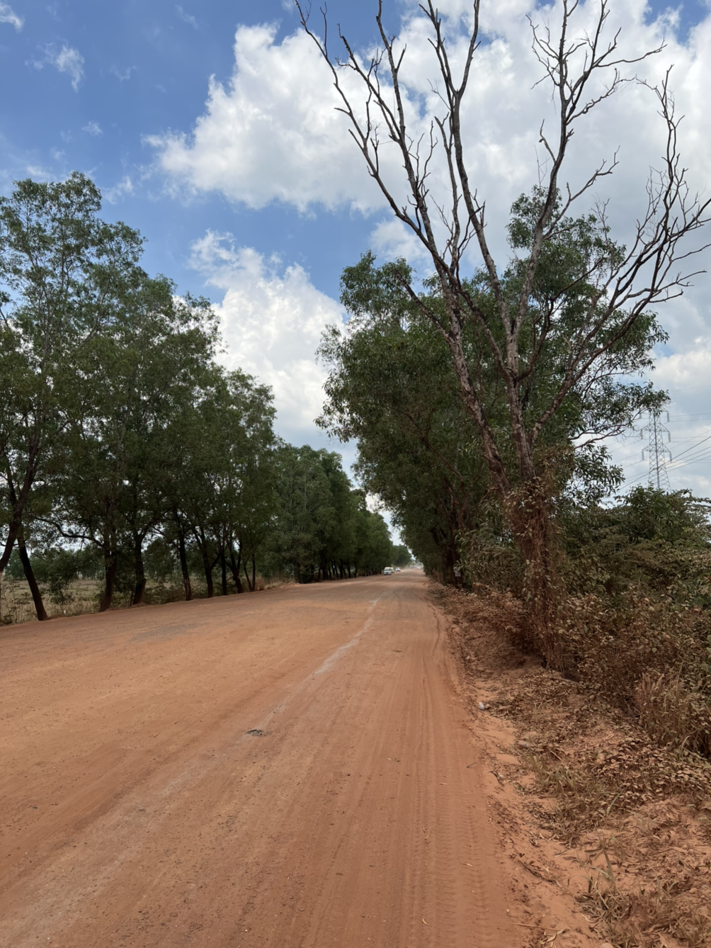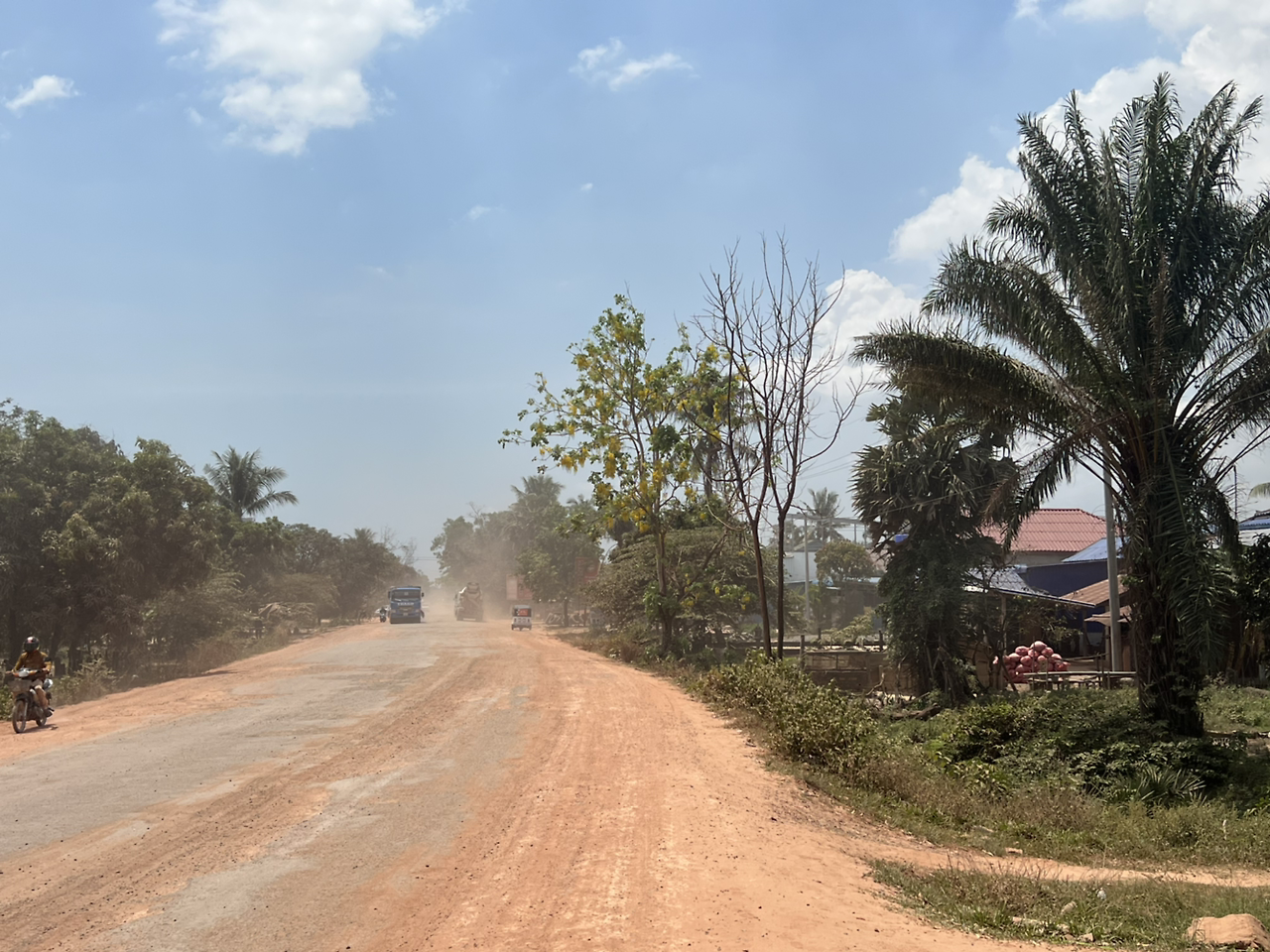 40분쯤 달렸을까, 스트레칭을 하려고 잠시 갓길에 오토바이를 세웠다. 이때까지만 해도 길이 나쁘지 않아 빠른 속도로 쭉 달려온지라 벌써 꽤 많이 온 듯한 느낌이 들었다. 이 정도라면 카페에서 쉴 필요 없이 시아누크빌까지 달릴 수 있을 것 같기도 했다. A도 최대한 빨리 다음 숙소에 도착해 쉬고 싶은 기색이 역력했다.