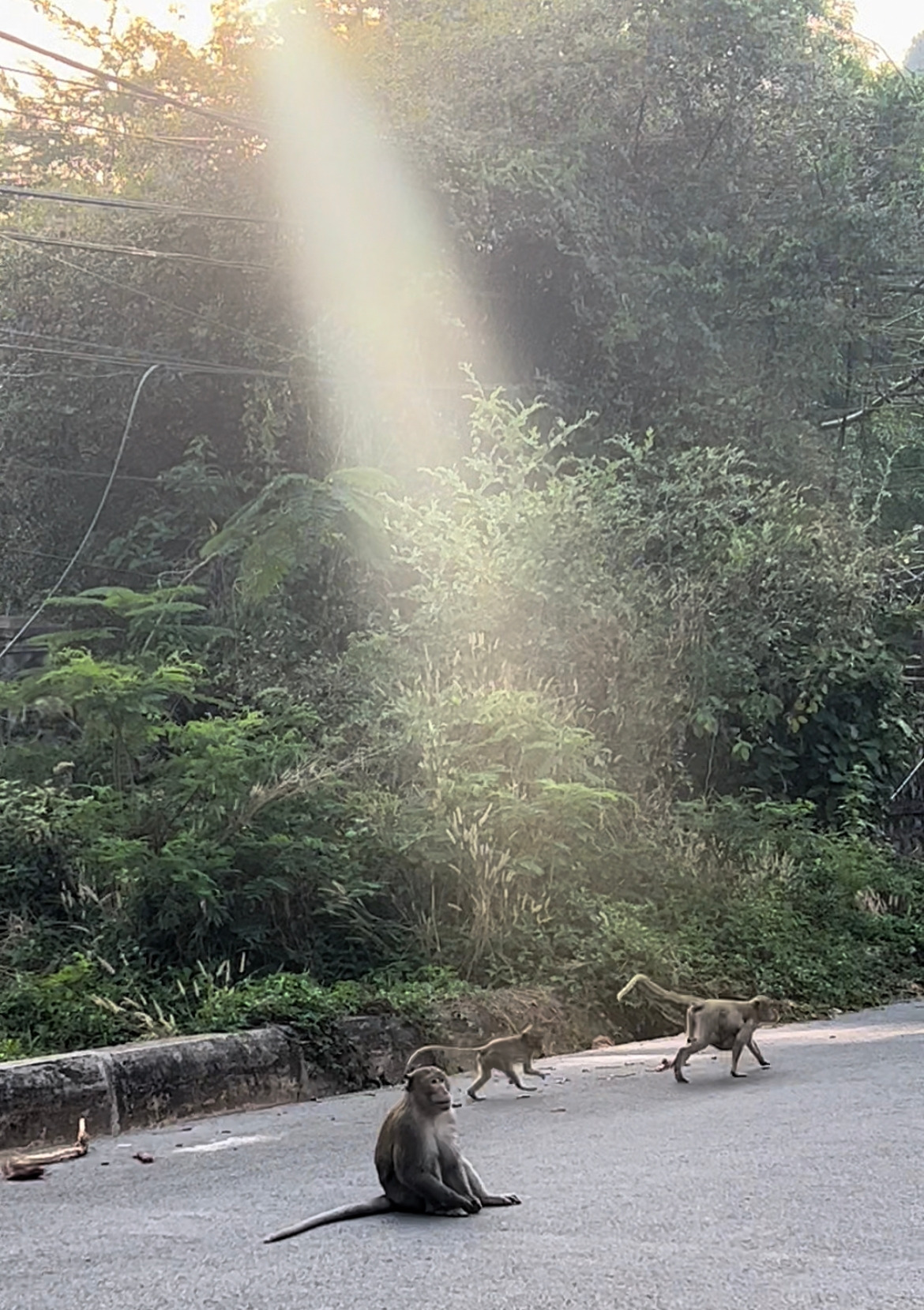 한적한 도로 위로 원숭이 가족들이 이동을 하고 있었다. 이 정도 수의 야생 원숭이들을 이렇게 가까이서 보는 건 처음이었다. 적어도 스무 마리 정도 될 법한 무리가 다 같이 이동 중이었다. 조그마한 새끼 원숭이들까지 데리고 어디론가 이동하는 걸 보니 이사를 가는 것 같았다. 아무리 도로에 차가 별로 없대도 혹시나 원숭이들을 보지 못한 차가 달려오기라도 할까봐 얼마나 조마조마 하던지. 절반은 주변을 살피며 도로를 건너고 나머지 절반은 전봇대와 전봇대를 잇는 전선을 따라 길을 건넌 뒤 무리에 합류했다.