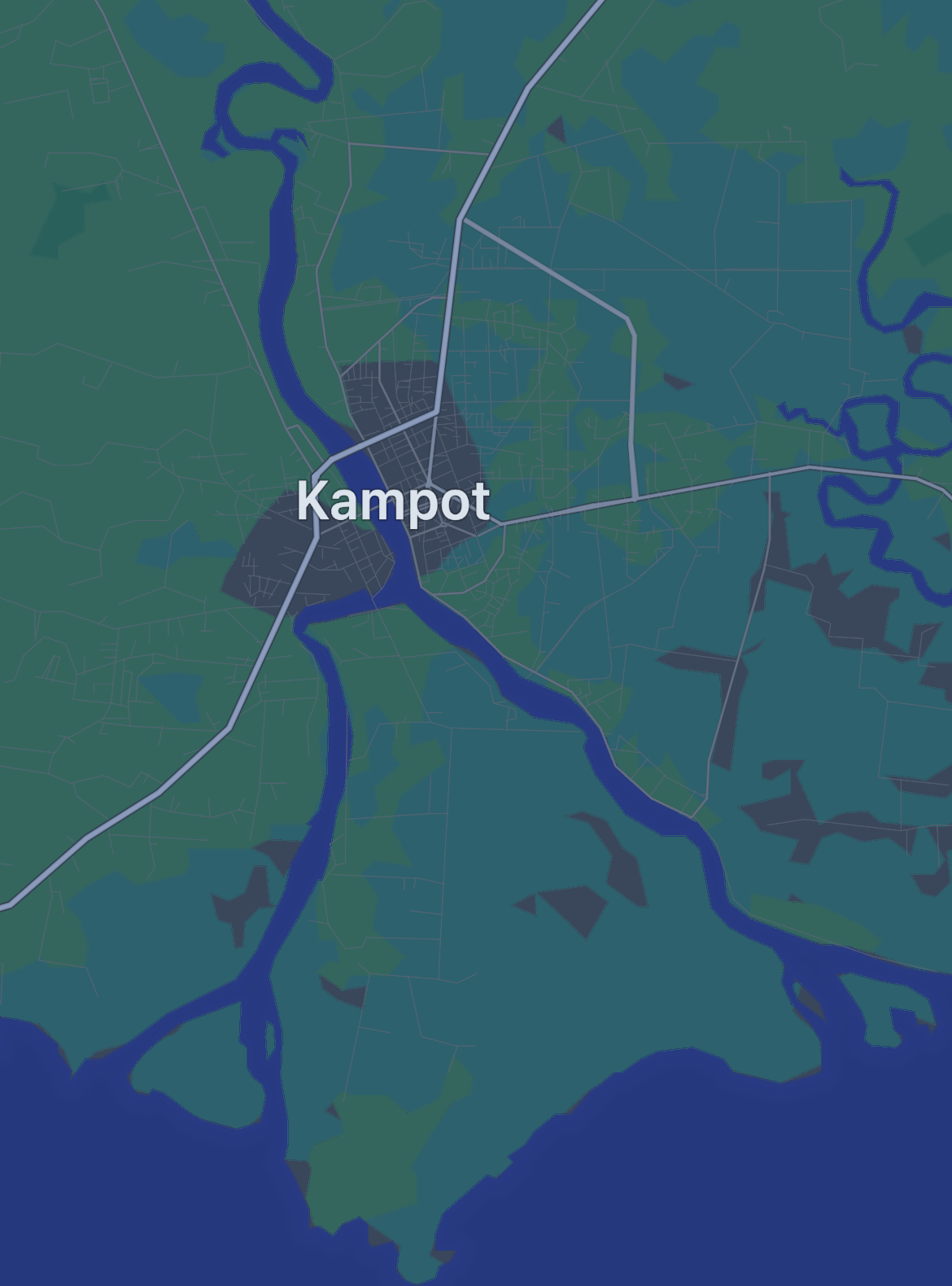 지난번에 보코산도 올라가 봤고 여기서 가볼 만한 곳은 다 가봤으니 더 둘러볼 만한 건 없을 줄 알았는데 열심히 검색을 해 보던 A가 꽤나 흥미로운 곳들을 발견해냈다. '피시 아일랜드'로 불리는 섬은 다리로 연결되어 있어 배를 탈 필요 없이 운전해 가서 둘러볼 수 있다는데, 나는 캄폿에 섬이 있는 줄도 몰랐었다. 지도로 확인해보니 캄폿은 그 섬을 포함해 크게 삼등분된 모양으로 도시가 형성돼 있더라.