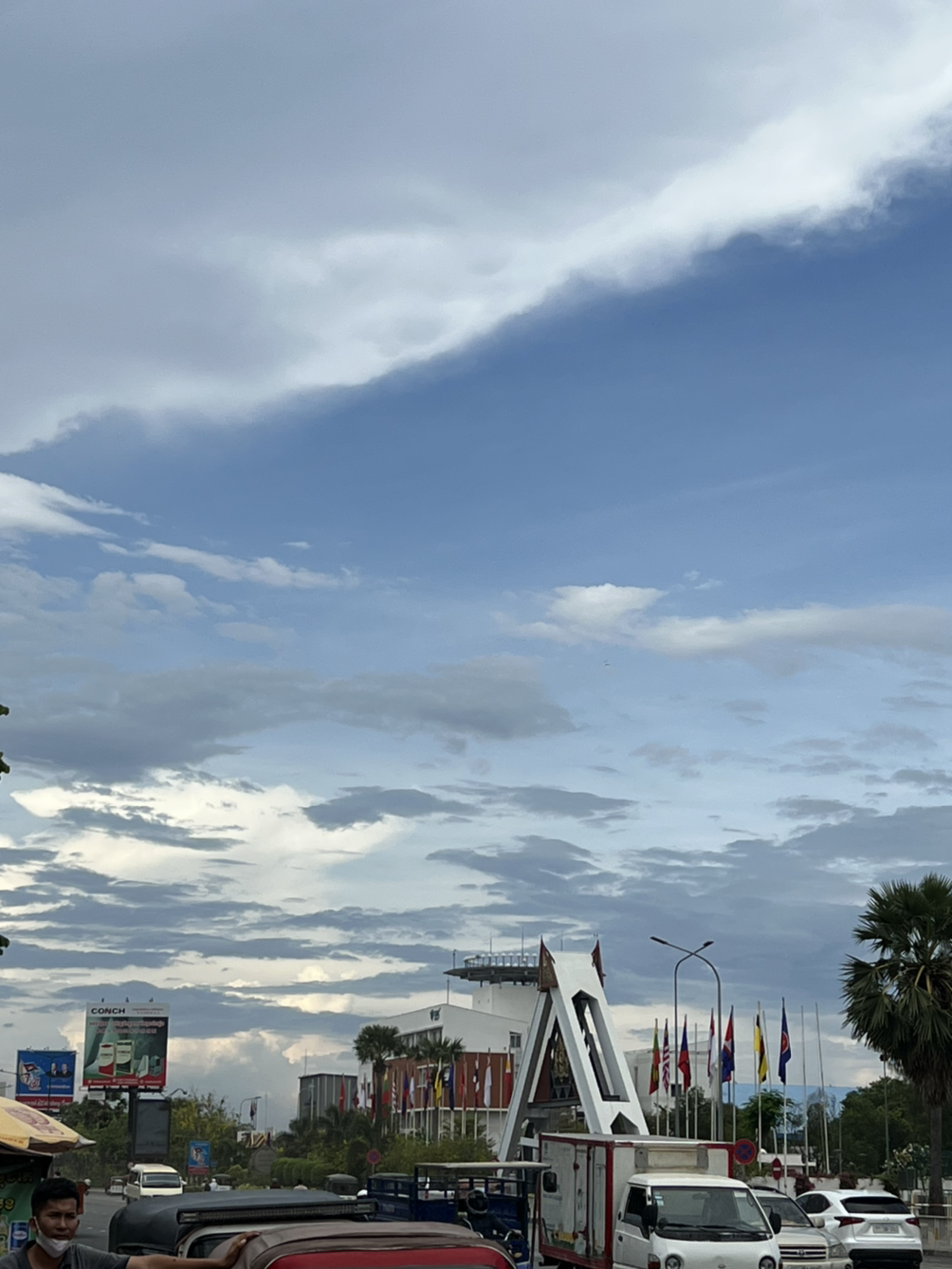 프놈펜 시내를 가로질러 달리는 20분 동안 비는 점점 잦아들더니 이내 맑게 씻긴 하늘이 얼굴을 드러냈다. 툭툭 아저씨가 경로를 착각하신 바람에 이민국 주위를 빙빙 돌아야 했고 시원하게 퍼부었던 비 때문에 바닥이 전부 웅덩이로 가득했지만, 우리는 어찌어찌 목적지에 도착했다.