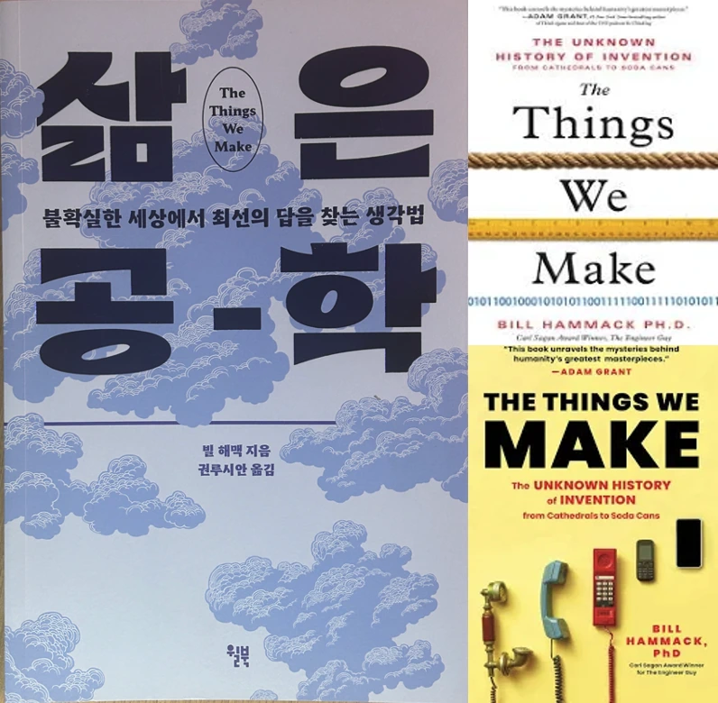 그런데 표지와 제목이 난감하다. 구름들과 제목, 그게 표지의 전부다. 글쎄, 왜 구름일까. 그리고 제목은 왜 공학이 아니라 "공-학"일까? 책 내용을 떠올리면 얼추 짐작할 수 있다. 날씨나 기후를 예측하기 위해서 과학자들은 이론에 의지한다. 마치 우유생산량이 떨어져서 걱정하는 목장주에게 과학자들이 제시한 해결책이 진공상태의 구형 젖소를 가정하는 것처럼. 하지만 공학자들은 과거 날씨 기록과 샘플을 이용해서 불확실한 미래에 수치를 매길 수 있고, 이렇게 경험칙을 통해 만든 자료로 고층 건물이나 다리를 만들 때 100년에 한 번 있을까 말까 한 극단적인 기후환경을 견딜 수 있게 할 수 있다는 매우 공학적인 메시지가 담겨 있는 것으로 보인다. 이 과정이 여러 사람의 무수한 시행착오를 통해 이루어진다는 뜻에서 제목에서 공학의 공(工)을 함께 공(共)으로 바꾼 "삶은 공-학"을 제목으로 사용한 것으로 보인다. "삶은 공-학" 즉, 삶과 발명은 여럿이 함께 만드는 것이라는 뜻이 된다. 영문본의 직관적인 표지에 비해 생각을 많이 해서 만든 재미있고 뜻깊은 표지다.