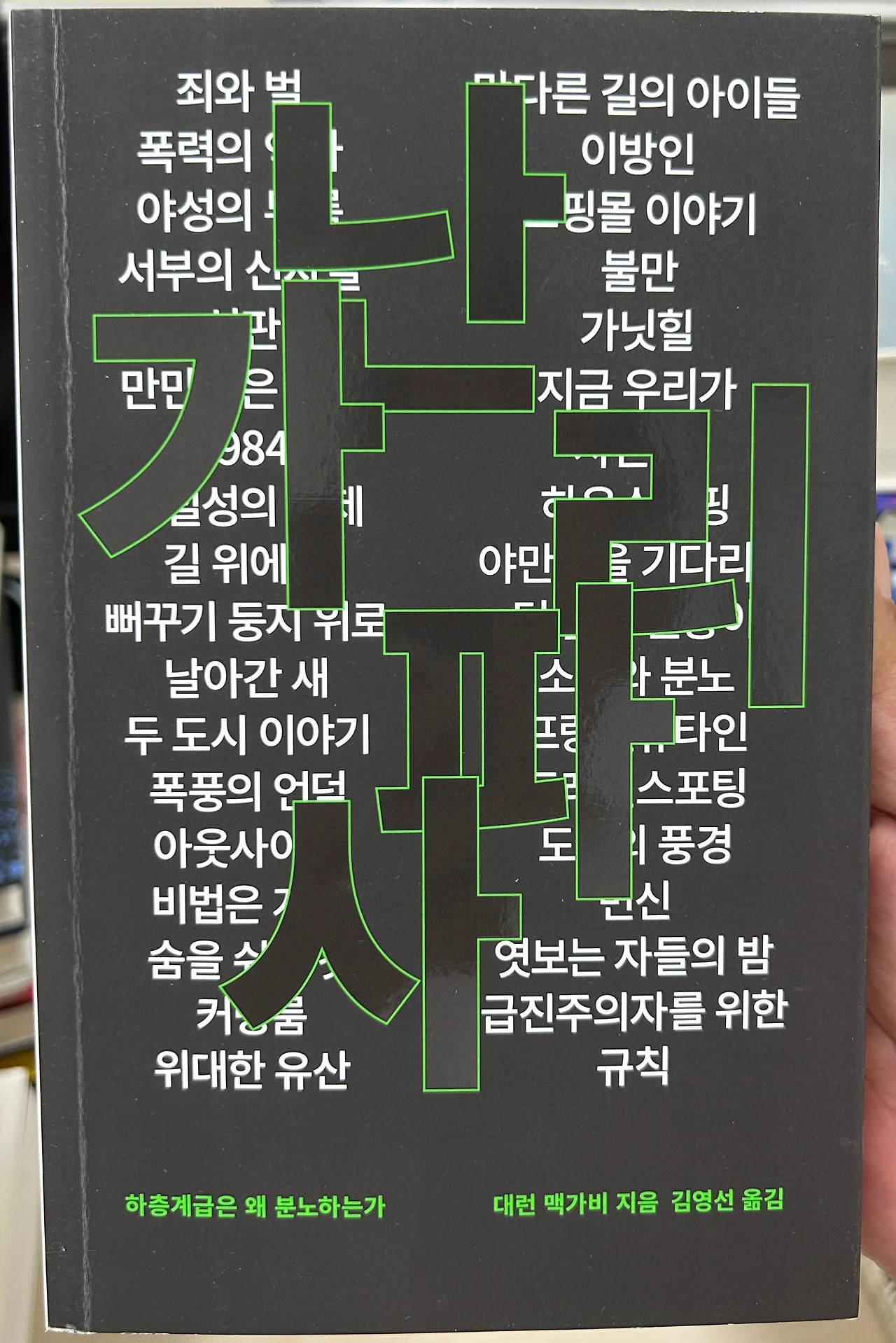 제목을 참 잘 지었다. 센세이셔널하다. 하지만 책 표지는 참 볼품없다. '가난'과 '사파리'라는 어울리지 않는 두 단어를 엮은 제목과 내용을 표지이미지로 만들어내기 쉽지 않았을거라 짐작되지만, 책의 소제목이자 저자가 그동안 써 온 칼럼들의 제목을 주루룩 적어 놓은 위에 제목을 쓴게 표지라서 다소 실망스럽다. 도발적인 제목이 아니었다면 우연히 이 책을 집어들 사람은 없었을듯 하다.