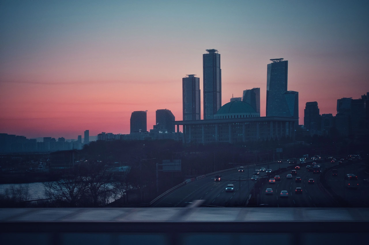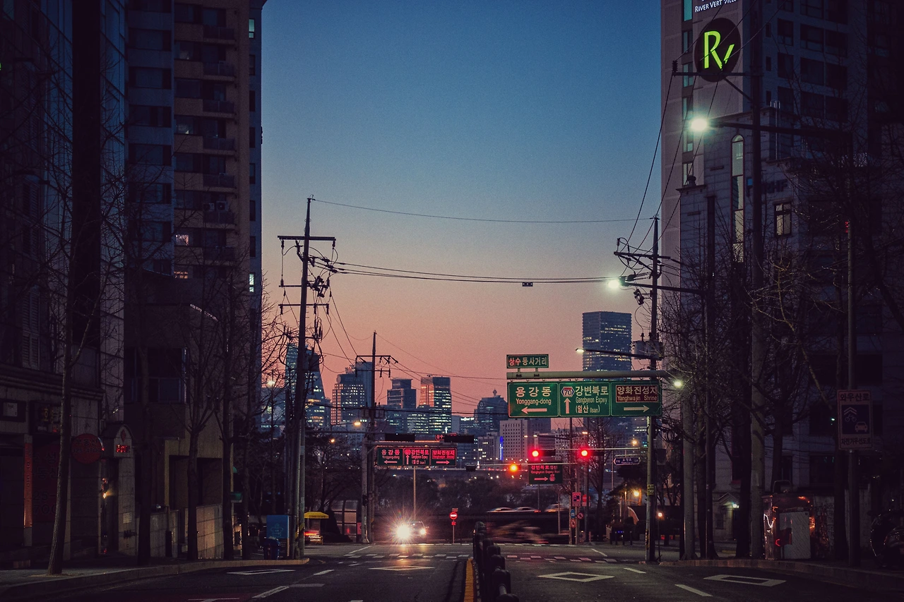 도로 위 자동차의 빛은 많아지고, 빠르게 어딘가로 향한다.