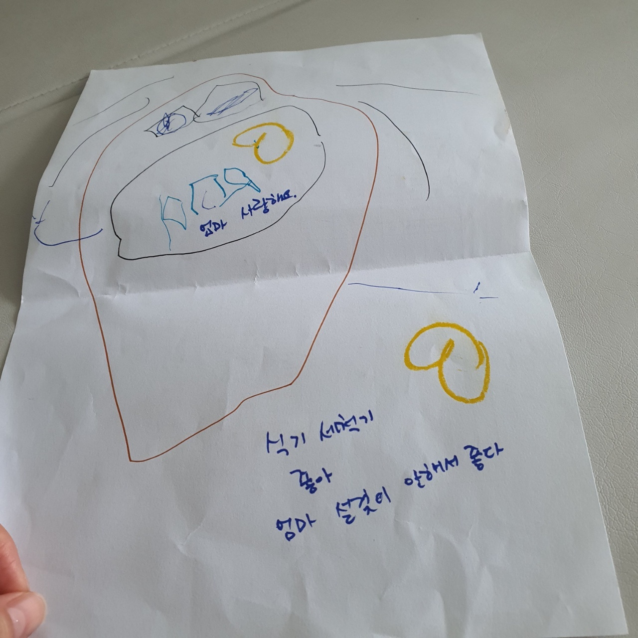 최근에는 대추가 새로 산 식기세척기를 주제로 또다시 편지를 써 언니에게 건넸다. 단정한 글씨가 또박또박 쓰인 걸로 보아 이번에는 아이가 말하는 걸 선생님이 받아써준 것 같았다. 편지의 내용은 “엄마 사랑해요. 식기세척기 좋아. 엄마 설거지 안 해서 좋다”는 것이었다. 시댁 식구들과 함께 살며 살림을 도맡아 하는 언니의 일이 줄어든 게 좋았던 모양이다. 자기와 놀아줄 시간이 늘어난 게 마음에 들기도 했을 것이다.