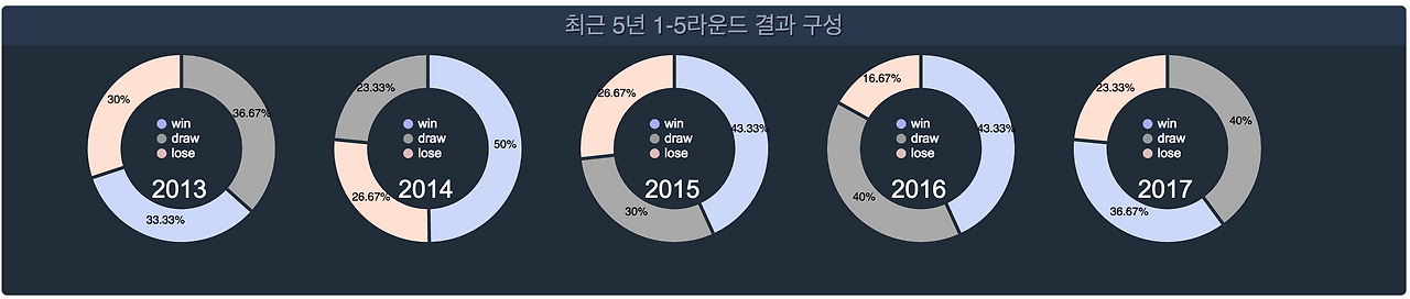 제목이 곧 내용인 글이다. 지금까지 치뤄진 K리그 클래식의 경기수는 총 30개. 이 중 기억에 남는 경기는 단 하나도 없다. 축구를 좋아한다고 자부하는 사람인지라 K리그 클래식 뿐만 아니라 챌린지 경기들까지도 관심을 가지고 보고 있다. 비록 경기 전부를 모두 시청하지는 못하지만 적어도 하이라이트는 챙겨보려고 노력하고 있다. 그런데 재미가 없다. 왜 재미가 없을까 고민을 해보다가 간단한 생각 몇 개가 떠올라서 간단히 정리해봤다. (그림들은 귀찮지만 최대한 D3.js로 그리려고 노력했다. HTML, CSS 개념이 너무 없다보니 그림도 이쁘게 안나오는 듯 하다ㅠ)