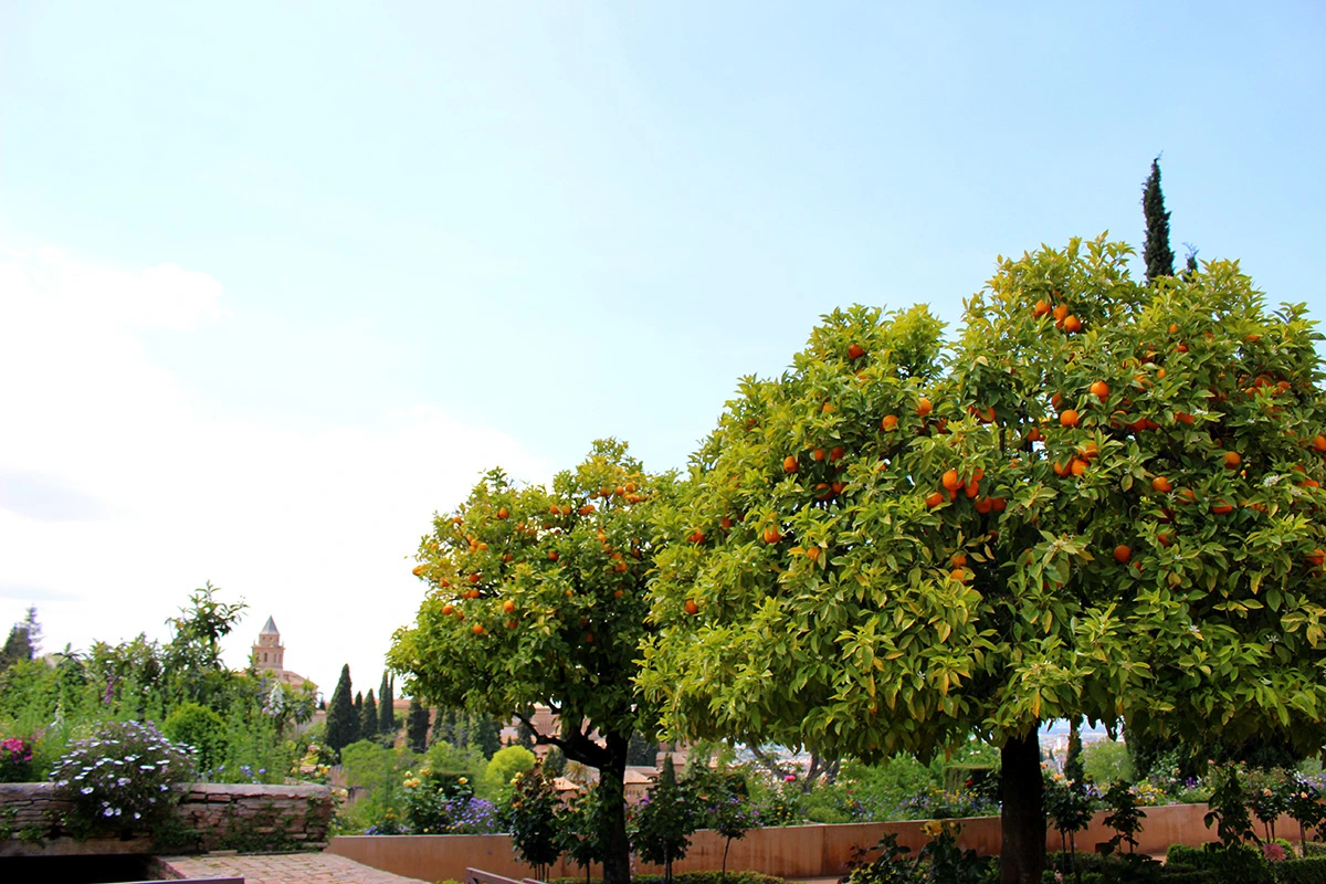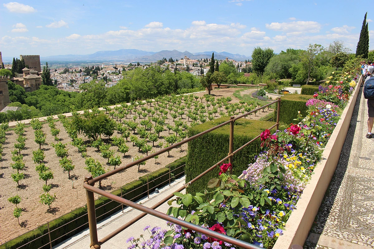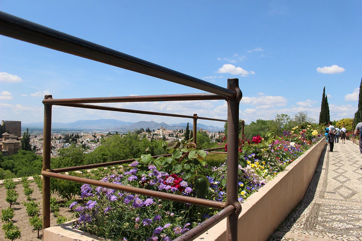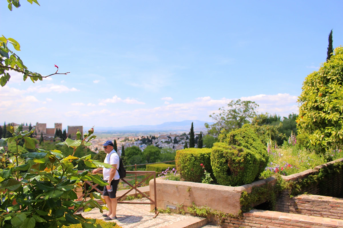따가운 햇볕을 견디며 줄을 서고 오픈되자마자 관람을 시작했다. 정원이 먼저 나왔는데 오렌지 나무의 꽃향기가 맞이했다. 약간 프리지아 향이 나는데 너무 황홀했다. 온갖 꽃들이 배치되어있는데 바람에 그 향기들이 넘실거렸고 마치 지상낙원에 온 느낌이 들었다. 정말 진심으로 모든 순간이 행복했다. 사진도 많이 찍었다. 높은 곳에서 바라본 그라나다 전경은 예술이었고 하늘도 맑고 날씨가 완벽했다.