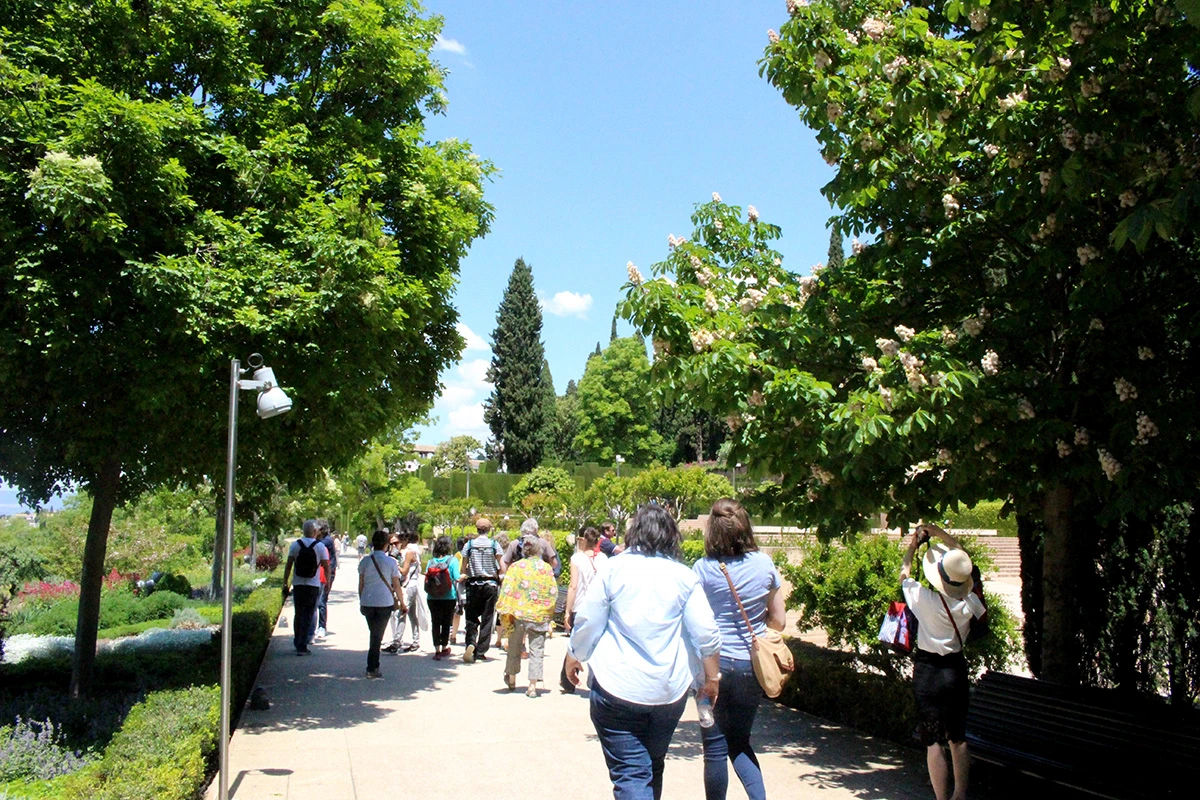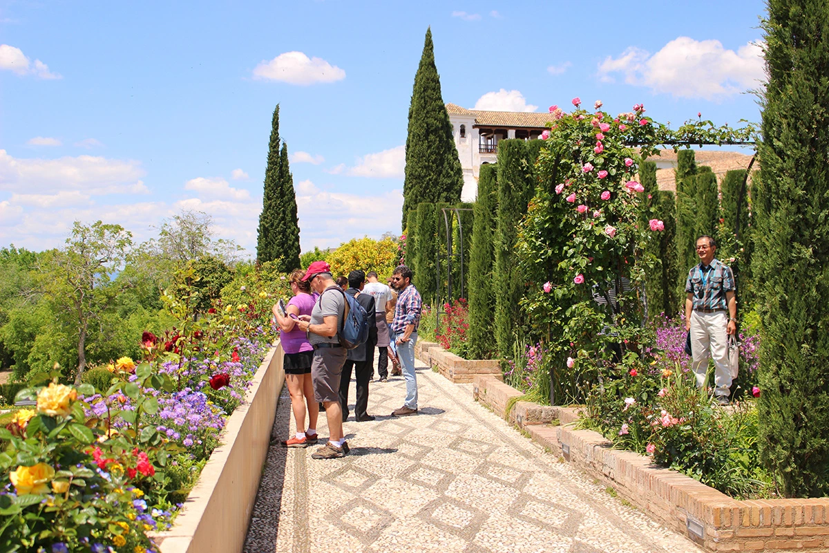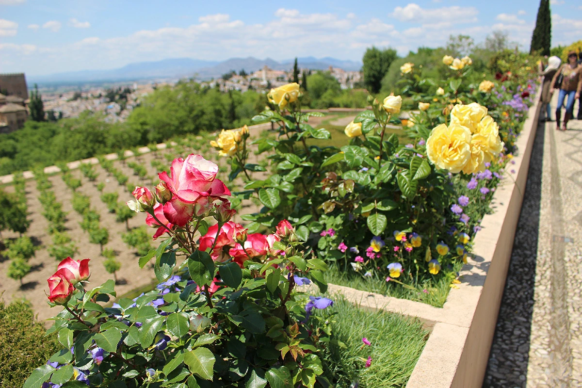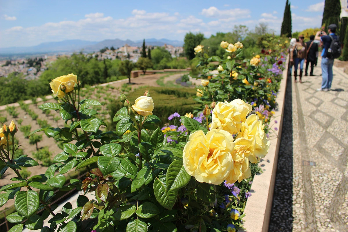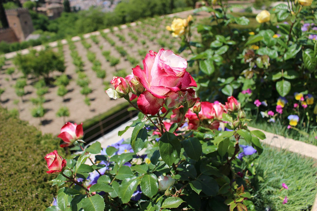 따가운 햇볕을 견디며 줄을 서고 오픈되자마자 관람을 시작했다. 정원이 먼저 나왔는데 오렌지 나무의 꽃향기가 맞이했다. 약간 프리지아 향이 나는데 너무 황홀했다. 온갖 꽃들이 배치되어있는데 바람에 그 향기들이 넘실거렸고 마치 지상낙원에 온 느낌이 들었다. 정말 진심으로 모든 순간이 행복했다. 사진도 많이 찍었다. 높은 곳에서 바라본 그라나다 전경은 예술이었고 하늘도 맑고 날씨가 완벽했다.