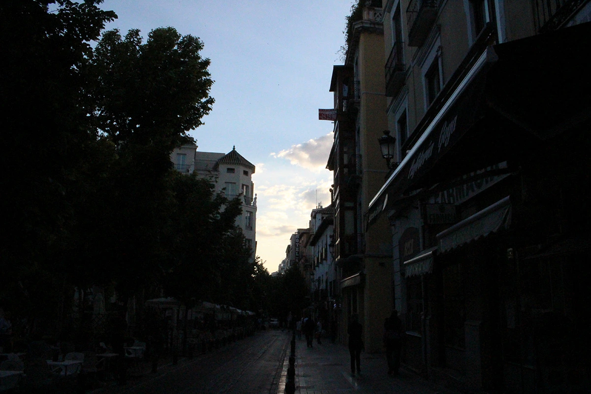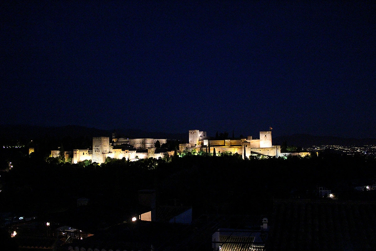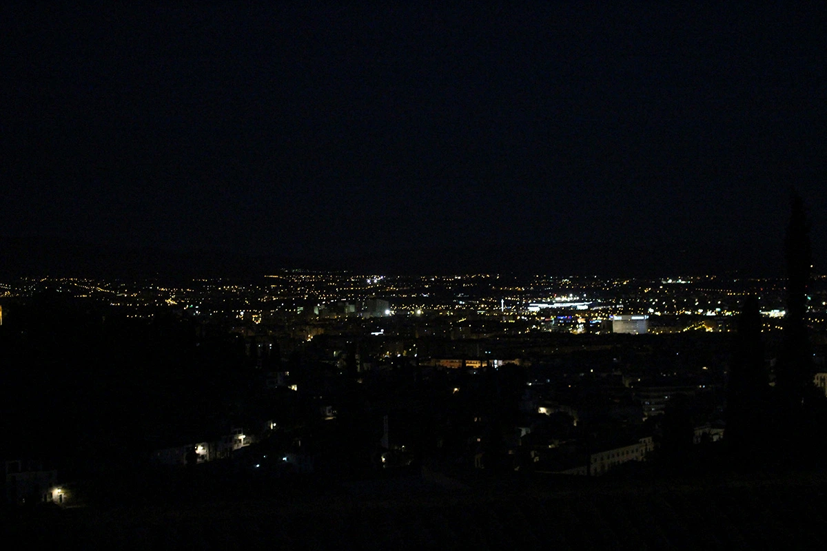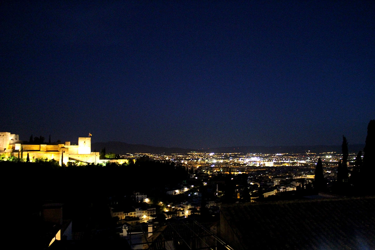 그 와중에 해는 저물어가는데, C1 버스가 도저히 오질 않았다. 결국 15분가량 기다리다가 어느 가게 들어가서 물어보고 우리가 기다리는 정류장이 아니라는 걸 깨달았다. 길을 건너 맞은편 도로의 정류장으로 가려는 순간 버스가 왔고 우리는 심장이 터질 정도로 뛰었지만 정류장이 너무 멀어서 놓쳤다. 기진맥진 힘빠져서 다음 차를 기다렸고 타서 결국 산 니콜라스 전망대에 다다랐다. 야경은 생각보다 예뻤다. 알함브라보다 도시의 불빛이 훨씬 영롱했다. 불빛들이 일렁여서 더 몽환적이었다. 사진으로 절대 담기지 않았다. 동시에 한국에 가서 식장산 야경도 봐야겠다고 다짐했다(!). 2-30분 가량 보고 다시 버스를 타고 내려갔다.