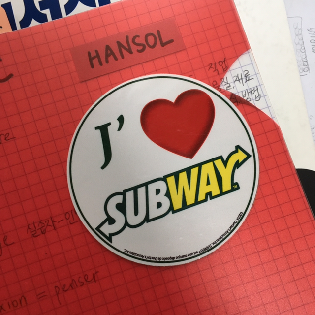 J'♥ SUBWAY 라는 스티커도 받아왔다. J'aime 을 하트로 표현하다니~