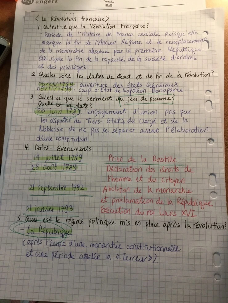 부끄럽지만 한국사도 제대로 공부하지 않은 내가 프랑스어로 프랑스 역사 공부를 하다니. 어학원 수업 중 한 과목이었던 'Culture' 수업 중 한 파트다. 서술형을 위해 달달 외우기.