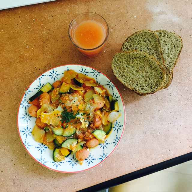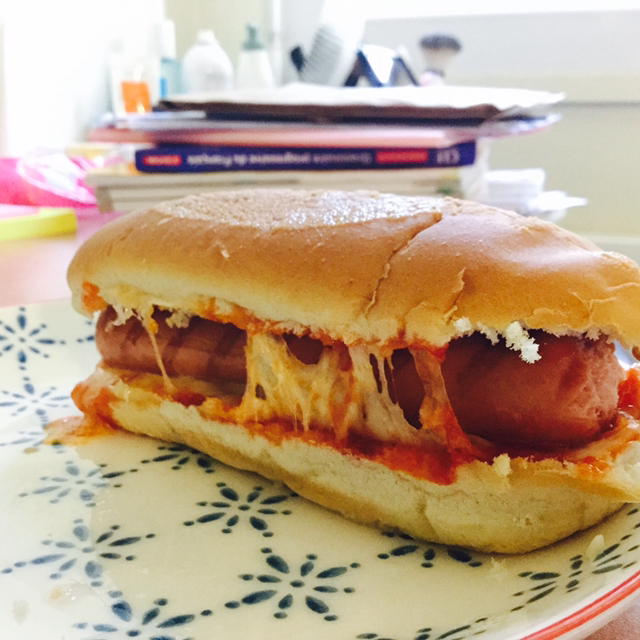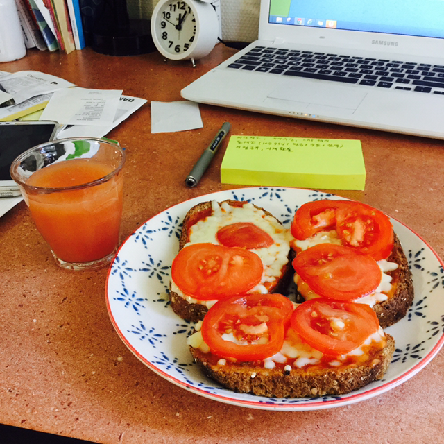 진리의 통밀빵 + 케첩 + 피자 치즈 + 토마토 익힌 것