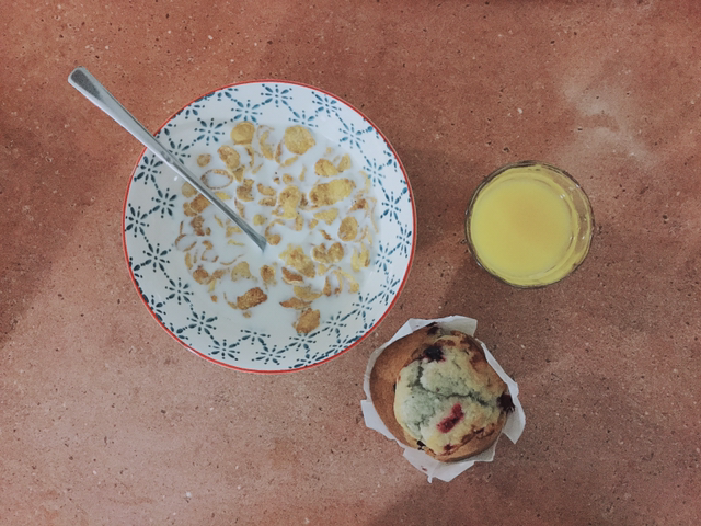 도착한 날 끼니를 때운 시리얼과 머핀