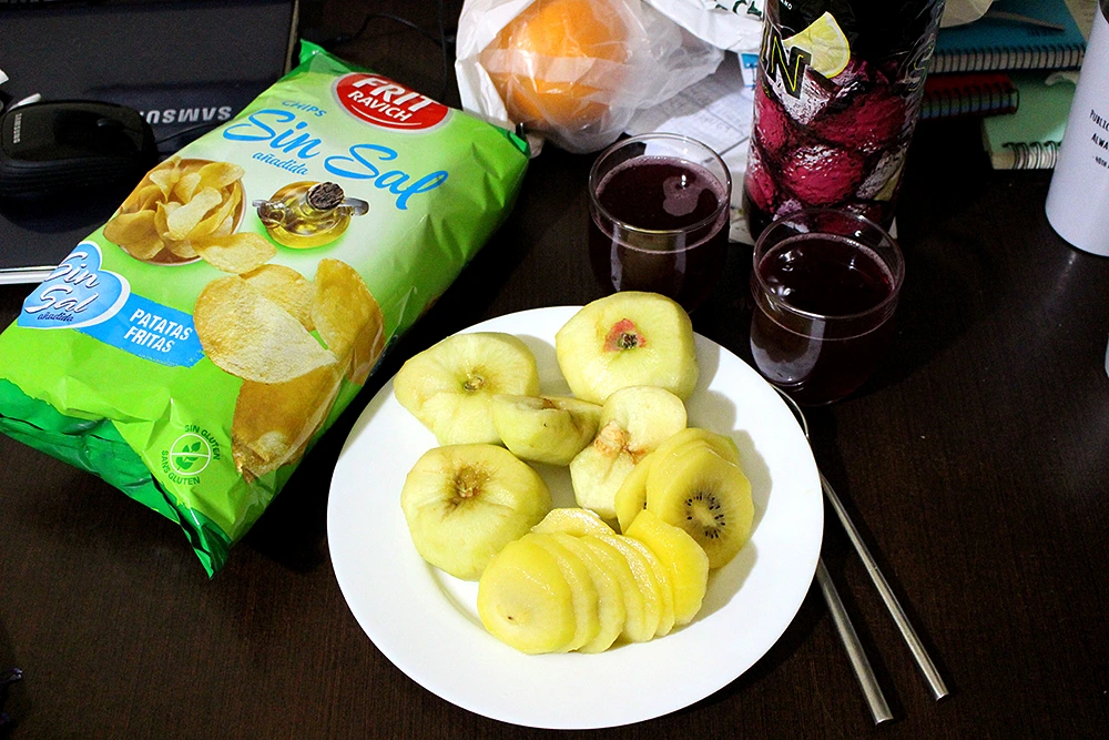 그리고 해가 점점 지기 시작했다. 백화점 지하 마트가서 장을 봤는데, 오렌지 샹그리아와 키위, 감자칩을사서 예진이 기숙사에서 먹었다. 샹그리아 정말 싸고 맛있다..! 큰 페트병 하나에 1~2유로였던 것 같다. 한국에서 사려면 맛도 못하고 가격도 엄청 비싸다.