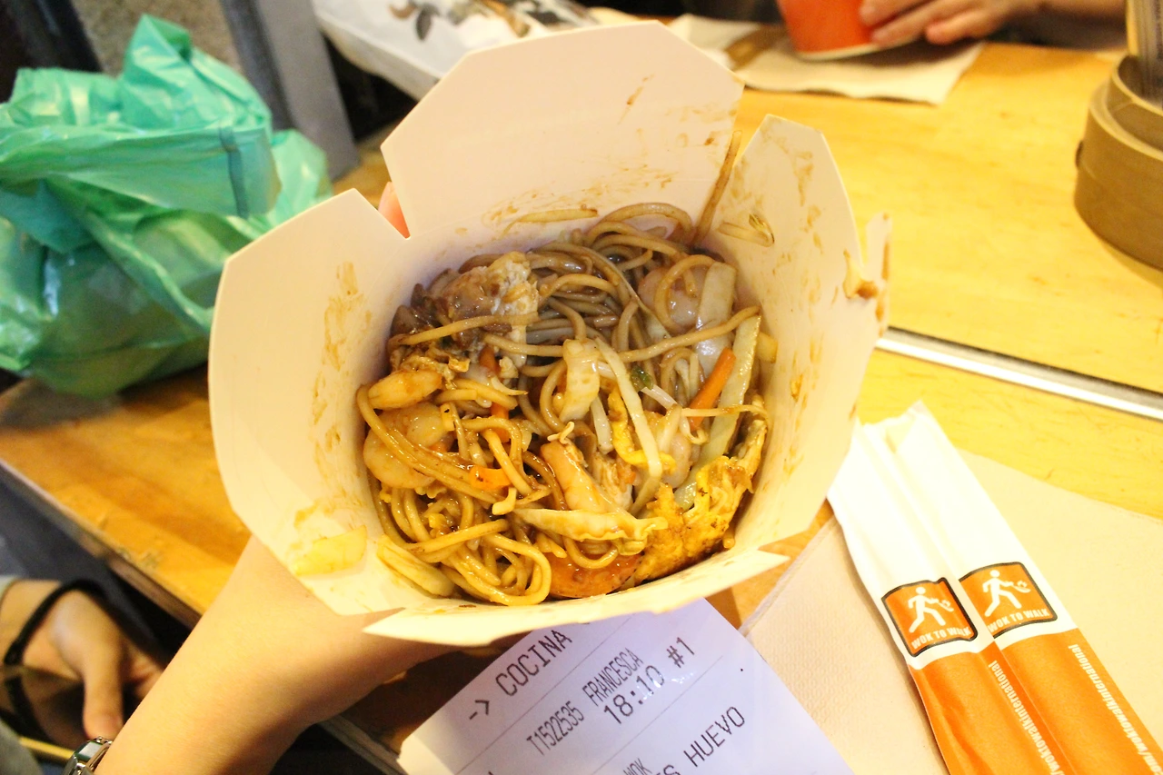 보케리아 시장을 얼추 구경하고 나와서 Wok to walk에 팟타이를 먹으러 갔다. 에그 팟타이에 새우랑 소고기를 토핑으로 얹어 둘이 나눠먹었다. 예진이는 둘이 나눠먹기에 충분하댔고 실제로도 충분했는데 배가 큰 나에겐 좀 모자랐다..ㅎㅎ 가격대비 맛있고 괜찮았음. 먹고 나가려는데 갑자기 비가 대차게 내리기 시작했다. 엄청 많이왔다. 프랑스에서도 이정도로 비 온적 거의 없는데.. 일기예보만 믿고 집에 우산을 두고 나왔다. 하필 바람막이도 아니라 린넨 집업을 들고 나왔다. 그래서 비를 막으려고 린넨을 머리에 둘렀지만 빗물은 다 새고..