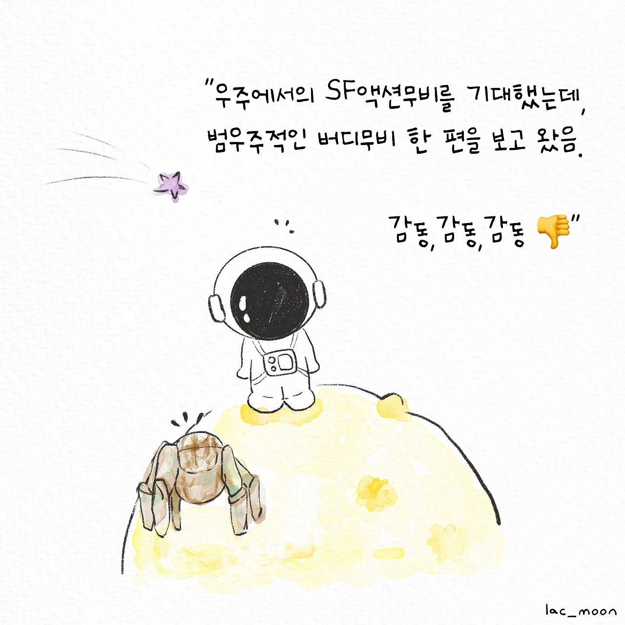 사실 나와 둘째는 영화를 보며 예상치 못한 눈물을 흘렸다. 그레이스가 우정을 나눈 외계인 로키를 위해, 애초에 자신이 원치 않던 행동을 스스로 하게 되는 모습을 보며 많은 생각이 들었다.