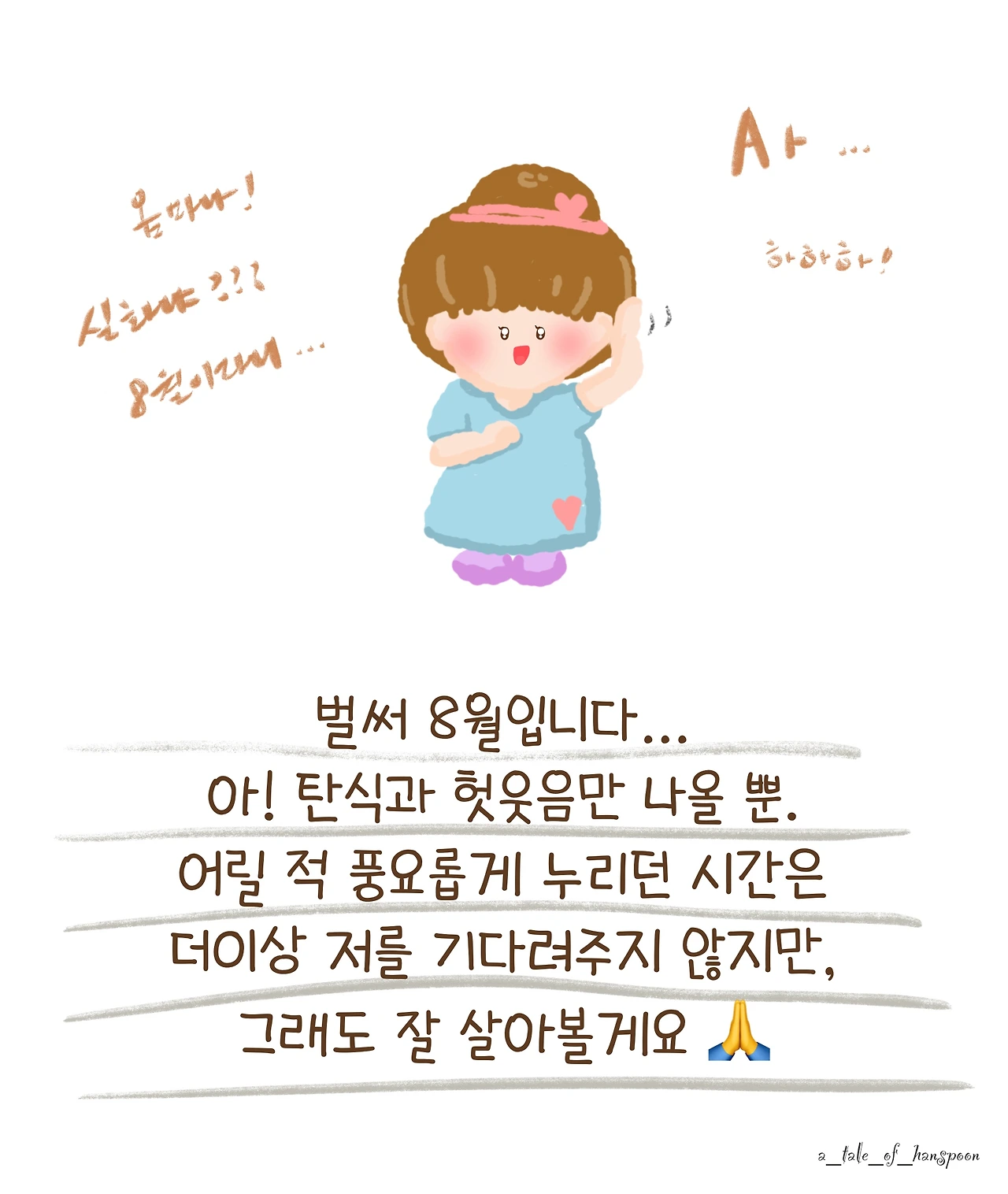 그때는 잠깐 졸았을 뿐 아침이 아닌 늦은 오후라는 사실이, 갑자기 나의 시간을 풍요롭게 늘려주는 마법 같았었는데... 이제는 착각이고 뭐고, 그냥 자고 일어나면 어느새 내일이 오늘이고 오늘이 어제가 되어버리는 급행열차에 올라 정신없이 달려가고 있는 것만 같다. 세월이 유수라는 말이 실감 나는 순간이다.