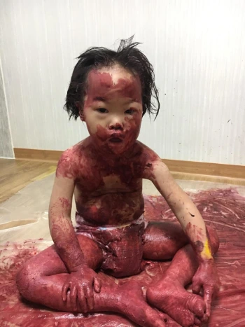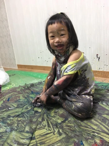 같은 물감을 사용했는데 왜 난 붉은색만 이렇게 나올까? 역시 미술체험은 아주 신비롭다. 이렇게 놀고 엄마한테 등짝 스메싱을 맞긴 했지만 나름 오감이 자라나지 않을까?
