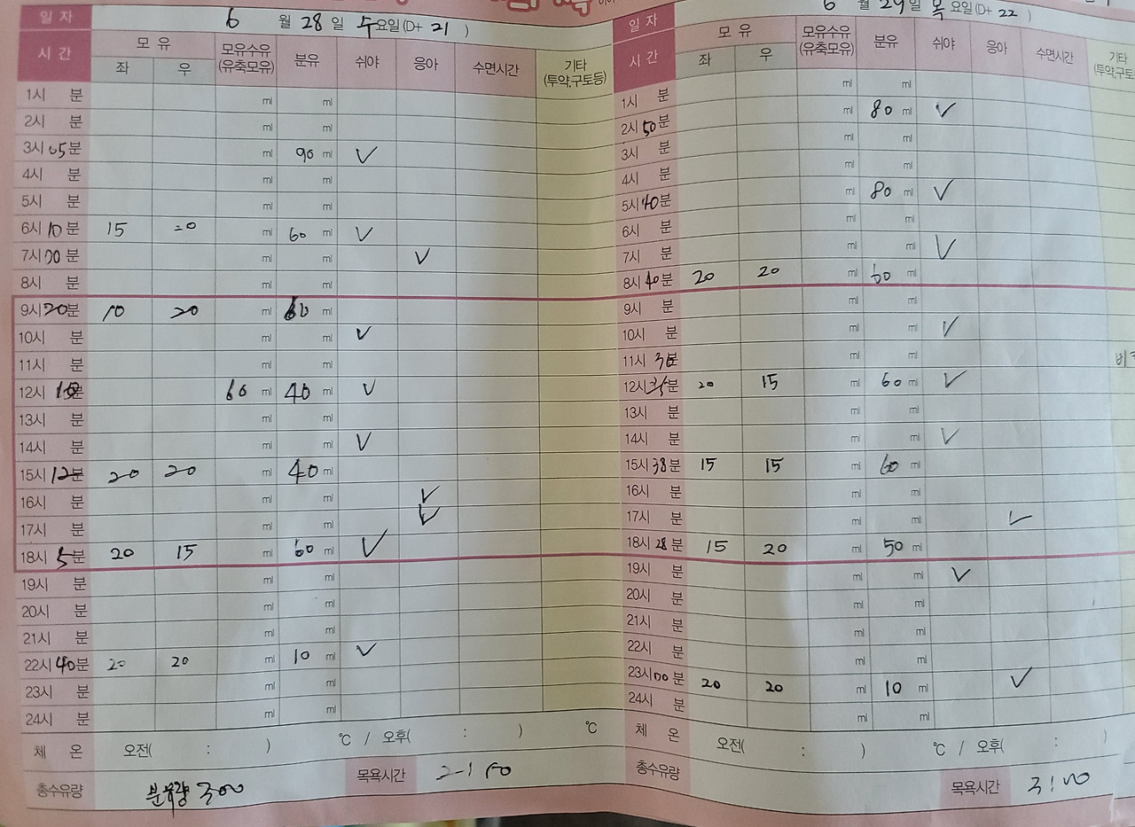 치열했던 생후 3주의 기록. 이렇게 써놓질 않으면 몆시에 뭘했는지 알 수가 없다. 같은 일상의 쳇바퀴이기에.