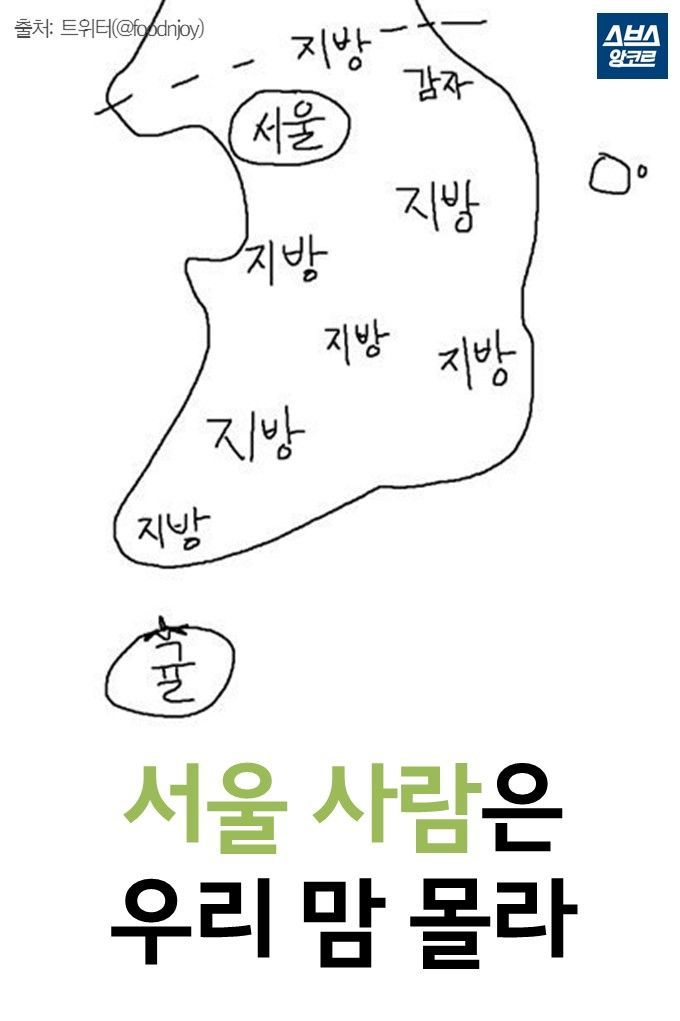 서울 사람들이 생각한다는 지방 지도 (출처=SBS)