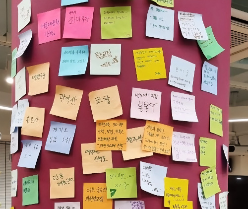 생각나는 키워드가 있으면 포스트잇에 적어서 붙인다.