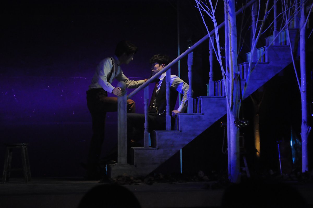 하지만 관객들은 바보가 아니다. 굳이 성냥 안 써도 빨간색 조명이 나중에 무대를 잔뜩 비추니 불 붙였다는 것쯤은 알 수 있고, '그'가 '멍청하게 새나 보고'라는 대사를 '나'한테 하기 때문에 새를 구경하고 있었다는 것도 알며, 담배 한 갑을 굳이 받고 그걸 꺼내지 않아도 '나'의 머릿속에서 그려진다는 걸 상상하면 되는 일이다. <쓰릴 미>를 처음 보는 이들에게 친절하고 싶었던 걸까. 하지만 지금과 같은 연출은 단순해도 너무 단순해서 유치하게 느껴질 정도였다. 게다가 군더더기가 붙으면서 인물들 간의 팽팽한 기싸움으로 쫀쫀해야 하는 장면들이 늘어지는 경우가 너무 많았다.