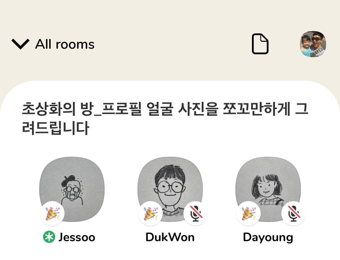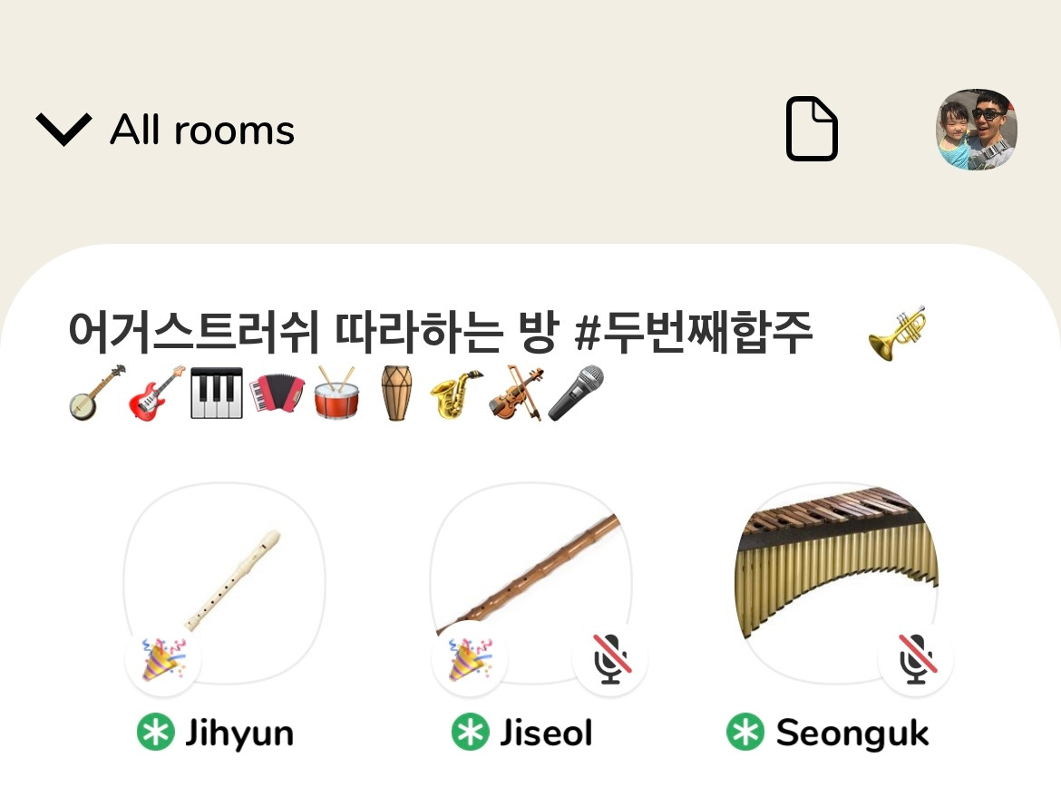 방을 만들고 입장하면 스피커와 청취자, 진행자로 구성됩니다.