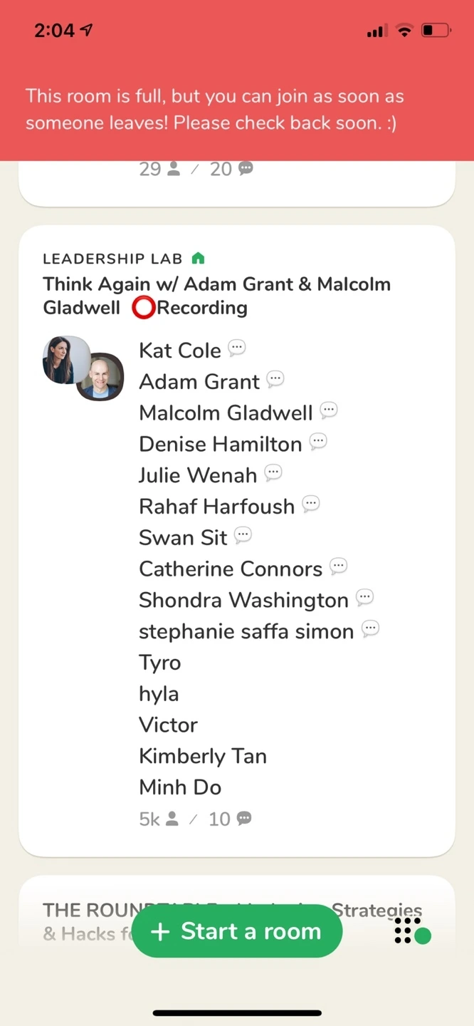 청취자는 손들기 기능을 이용해 스피커가 될 수 있으며 자유롭게 대화를 시작합니다.