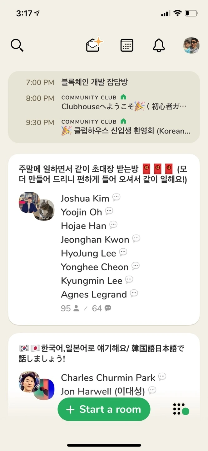 하루 이틀 사용해보면서 느낌 매력은 전문성 있는 대화를 내가 원하는 시간에 다양한 사람들과 허들 없이 소통할 수 있는 느낌이 매력적이었습니다. 대화는 쌍방향이며 휘발성이며 주제에 대해 하나로 고정할 수 없는 특징이 있습니다. 그리고 무엇보다 솔직하고 투명한 토론이 진행되며 깊이도 어느 정도 있었던 것 같습니다. 초기에는 직무 기반의 토론이 자주 보였지만 사용자가 늘어나면서 다양한 주제의 성격의 방들이 자주 보이고 있으며 말 그대로 클럽데이에 여러 클럽을 이동하면서 즐기는 파티 같은 느낌이었습니다.