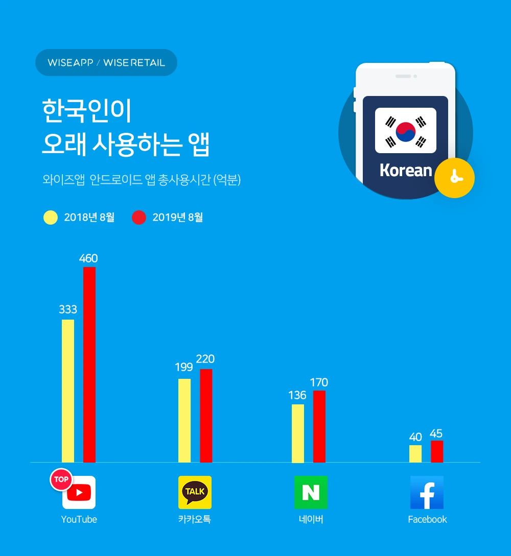 최근 여러 대항마들이 생겼지만, 여전히 유튜브는 막강한 동영상 플랫폼이다. 2019년 12월 언론진흥재단의 <언론수용자 조사>에 의하면 유튜브 등 동영상 플랫폼 이용률은 2018년 33.6%에서 지난해 47.1%로 증가했다. 유튜브도 여전히 국내 소비자들이 월간 442억 분(와이즈앱 조사, 2019년 11월 기준) 사용하는 서비스이다. 페이스북(41억 분)의 10배, 인스타그램(27억 분)의 16배가 넘는다. 거짓 정보의 온상이라는 비판도 받고는 있지만 (최근 코로나 바이러스 관련된 영상 역시 거짓으로 밝혀졌다) 다양한 정보를 생생하게 접할 수 있다는 장점은 동영상만이 가질 수 있다.