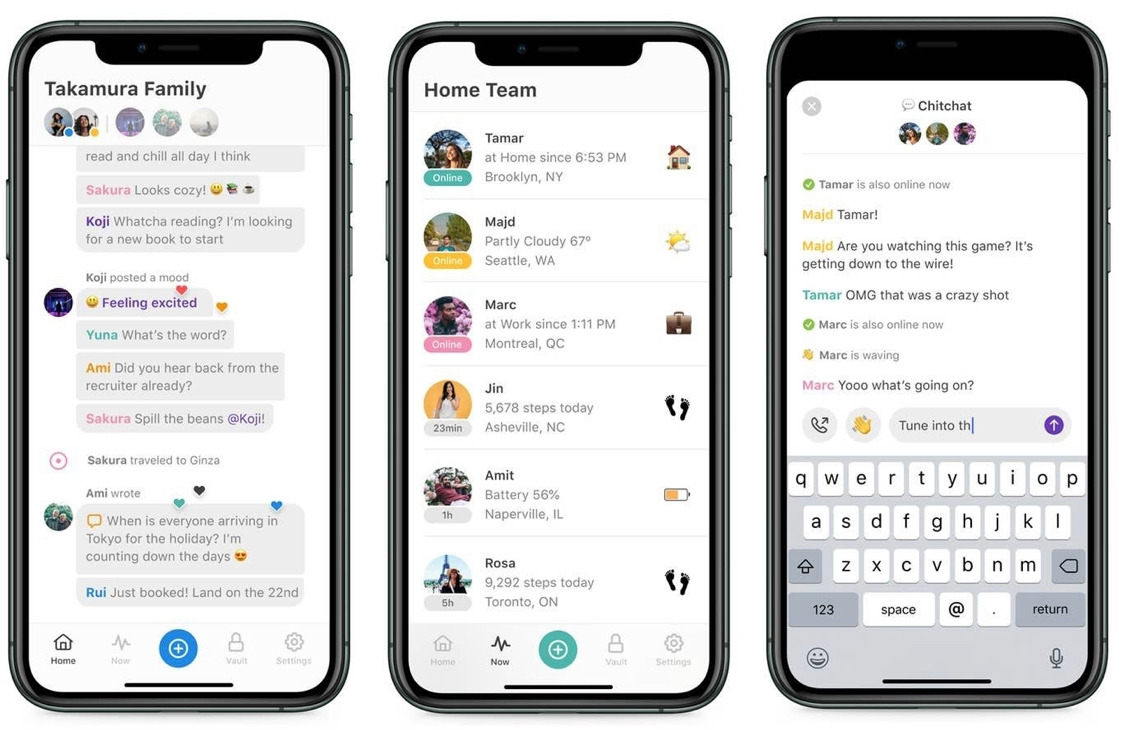 그렇지만 사람들은 아직도 소규모 네트워킹을 찾고 있다. 전 페이스북 직원들이 만든 앱인 코쿤 Cocoon을 살펴보자. 전 페이스북 직원들이 만든 이 서비스는 '고치'라는 뜻의 브랜드 이름처럼, 아주 소규모의 그룹을 위한 소셜 네트워크이다. 그룹원들에게만 정보를 공유하기 때문에, 배터리 잔량, 현 위치, 현 위치의 현지 시간이나 날씨, 오늘 걸음수 등 개인적인 정보도 공개하고 있다. 현재 로그인한 사람들과 채팅도 가능하고, 비행기표 등 이동정보와도 연동되어 안전하게 있는지 확인할 수도 있다. 대화 주제별로 대화가 묶인다는 점은 슬랙 Slack과 유사하고, 위치 공유가 된다는 점은 라이프360 Life360과 유사하다.