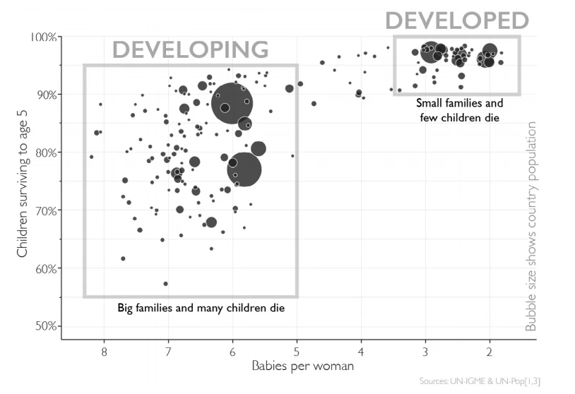 저자 한스 로슬링은 스웨덴의 의사이자 보건 통계학자이다. 여기서 저자는 우리가 흔하게 저지르는 착각을 하나씩 언급한다. 세상은 사실 우리가 생각하는 만큼 극단적이거나 이분법적이지 않다는 것이다. 그는 개발도상국 / 선진국이라는 분류보다는 일일 소득을 기준으로 1단계부터 4단계까지 나눈다. 그렇게 나눠본 세상은 생각보다 큰 발전을 이룬 상태이다.