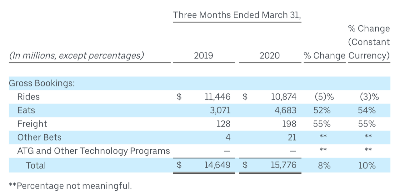 EBITDA의 타격은 크다. 우버는 작년 4분기, EBITDA를 +로 전환시키겠다고 약속했으나 코로나19가 터지면서 -$6.12억을 기록했다. 전년 동기 대비 -190% 역성장했다. 이번 분기에 영업 비용으로 $4.63억을 태웠지만 여전히 $90억의 현금 자산이 있다는 건 위안이 되는 사실.
