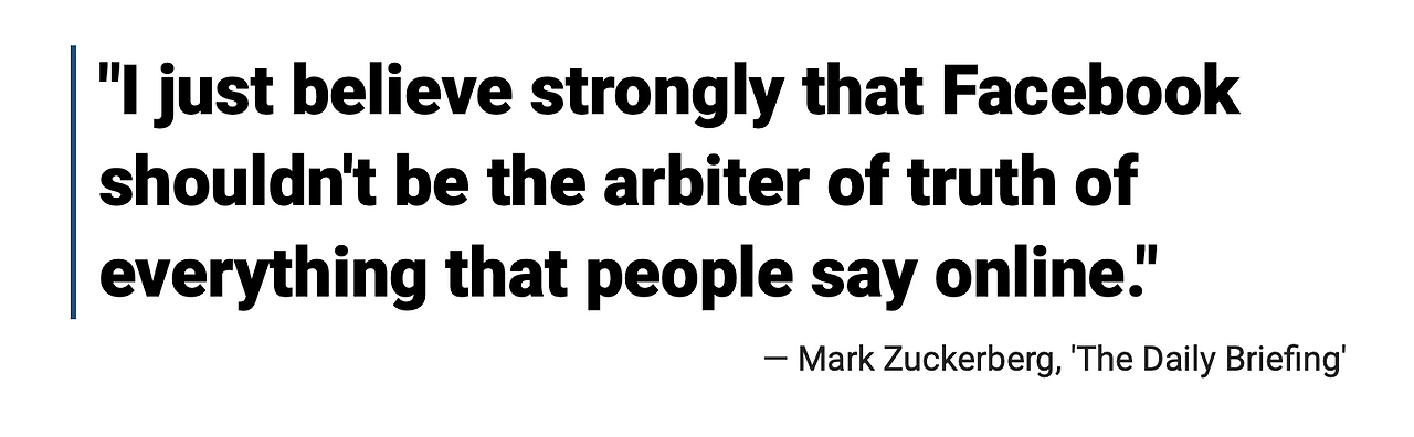 SNS들 중에서도 입장이 갈린다. 저커버그는 “페이스북은 진실의 중재자가 아니다”라고 말하며 신중한 태도를 보였다. 기존에도 트위터는 정치 광고를 전면 금지한 반면 페이스북은 정치 광고에 대한 팩트 체크를 하지 않겠다고 밝히며 의견 차이를 보인 적이 있다. 여기에 잭 도시는 즉각적으로 "'진실의 중재자'가 되자는 것이 아니라 대립하는 여러 주장들을 연결하고 정보를 공개함으로써 사람들이 스스로 결정할 수 있도록 돕자는 취지이다"라며 반발했다.
