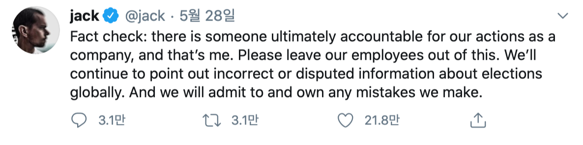 당연히 소셜 미디어의 반발은 거세다. 잭 도시 트위터 CEO는 “앞으로도 잘못되거나 논란이 있는 정보들을 계속 지적할 것”이라고 트윗했고, 수전 워치츠키 유튜브 CEO는 그간 유튜브가 공정하고 중립적이며 일관적인 (fair and neutral and consistent) 정책과 시스템을 마련하기 위해 노력을 기울여왔으며, 유튜브를 비롯한 SNS 기업들은 새로운 목소리를 가능케 하고 대화의 창을 만들었으며, 이에 대해 자랑스럽다고 말했다.