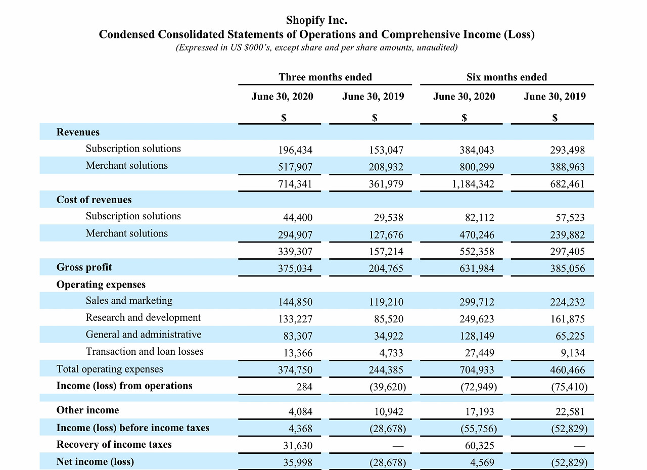밑에 실적 발표 자료와 주가 차트를 보면, 2020년도 2분기에 흑자 전환을 하며 마찬가지로 아름다운 우상향 그래프를 그리는 중. 이번 분기에 시장 기대치였던 5억 달러를 훨씬 상회하는 14억 달러의 매출을 냈다. 전년 대비 무려 97% 급증했다. 영업이익도 작고 귀엽지만 28.4만 달러를 기록했고 EPS (Earning per Share, 주당 수익)은 29센트 기록. 코로나 사태로 온라인 판매가 증가하면서 솔루션 매출인 Merchant Solutions 매출이 전년 대비 2배 이상으로 증가한 것이 눈에 띈다.