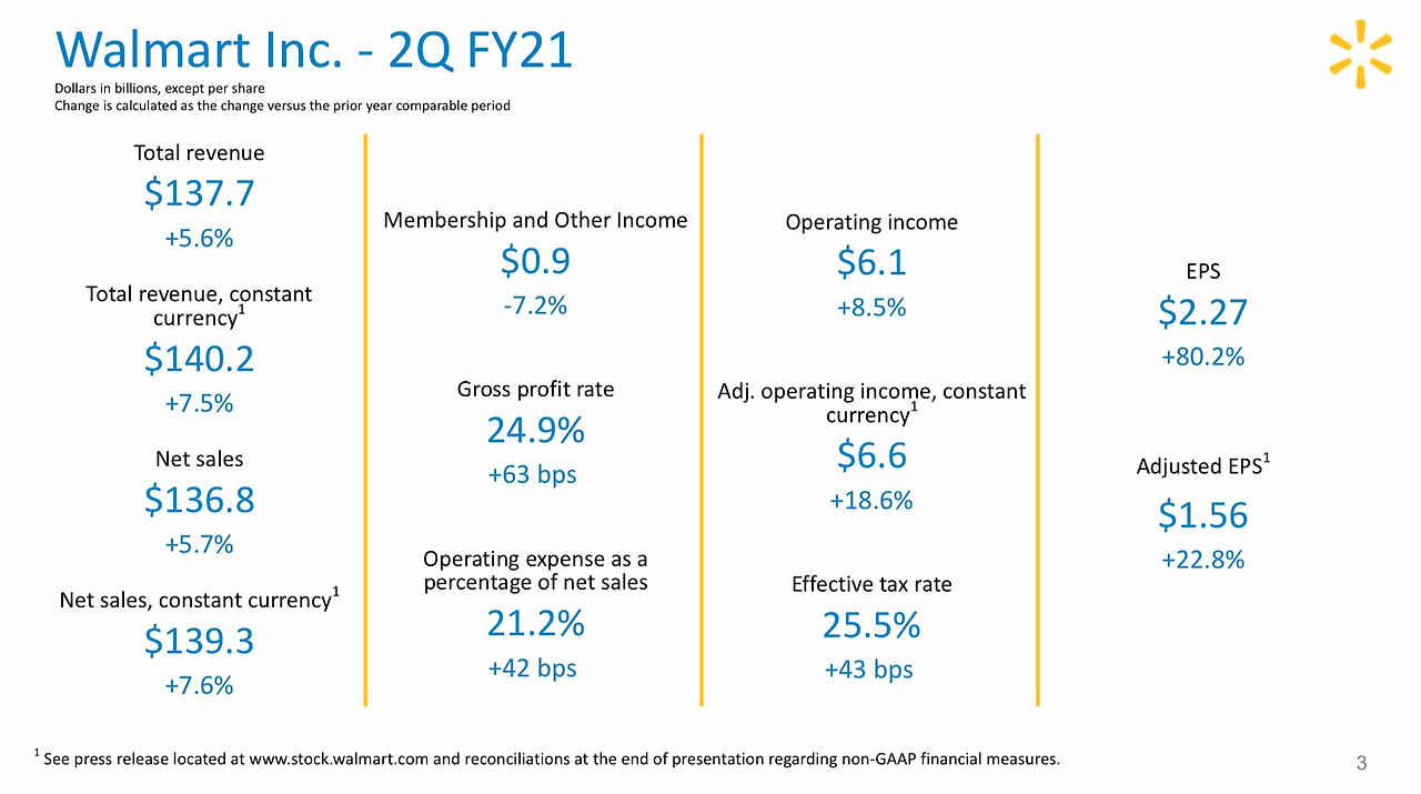 진짜 희한하다. 코로나 시대에 월마트가 왜 이렇게 잘 나가는가? 약간의 타격을 입긴 했지만 그럭저럭 나쁘지 않은 성적을 거두고 있다. 미국의 JC페니 등 여러 백화점 업체가 파산을 선언한 것을 생각하면 오프라인 업체치고 아주 선방하는 셈이다.